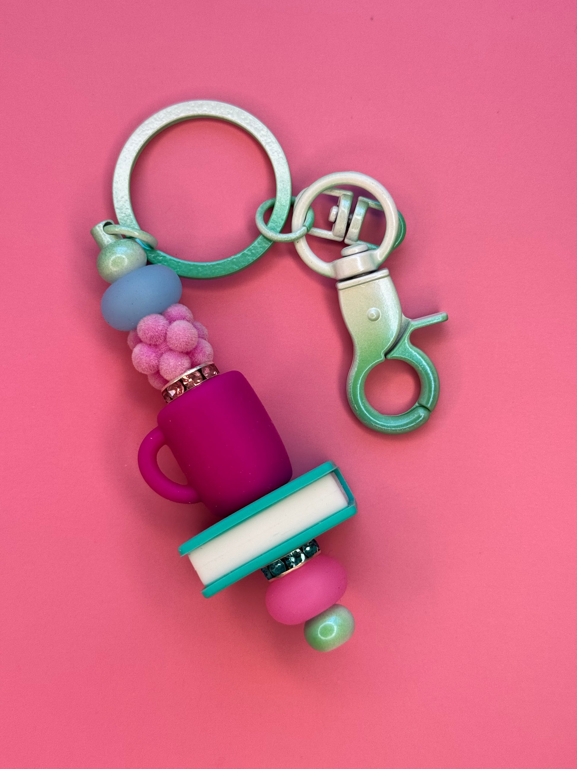 Why carry around boring old keychains when you can have a cute beadable one! These keychain are all one of a kind! No two are the same! These metal keychains come with adorable silicone books, silicone mugs, and many customizable beads!