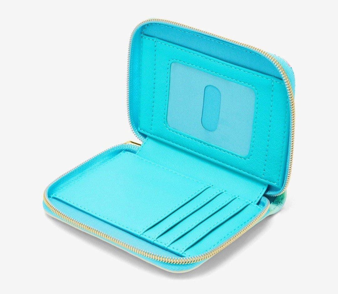 Enjoy Hawaii's lush scenery with this mini zipper wallet! Perfect for an adventure with your ohana, this wallet features Stitch hugging Scrump, surrounded by ducklings and hibiscus flowers. Comes with 5 card slots and a clear ID display.