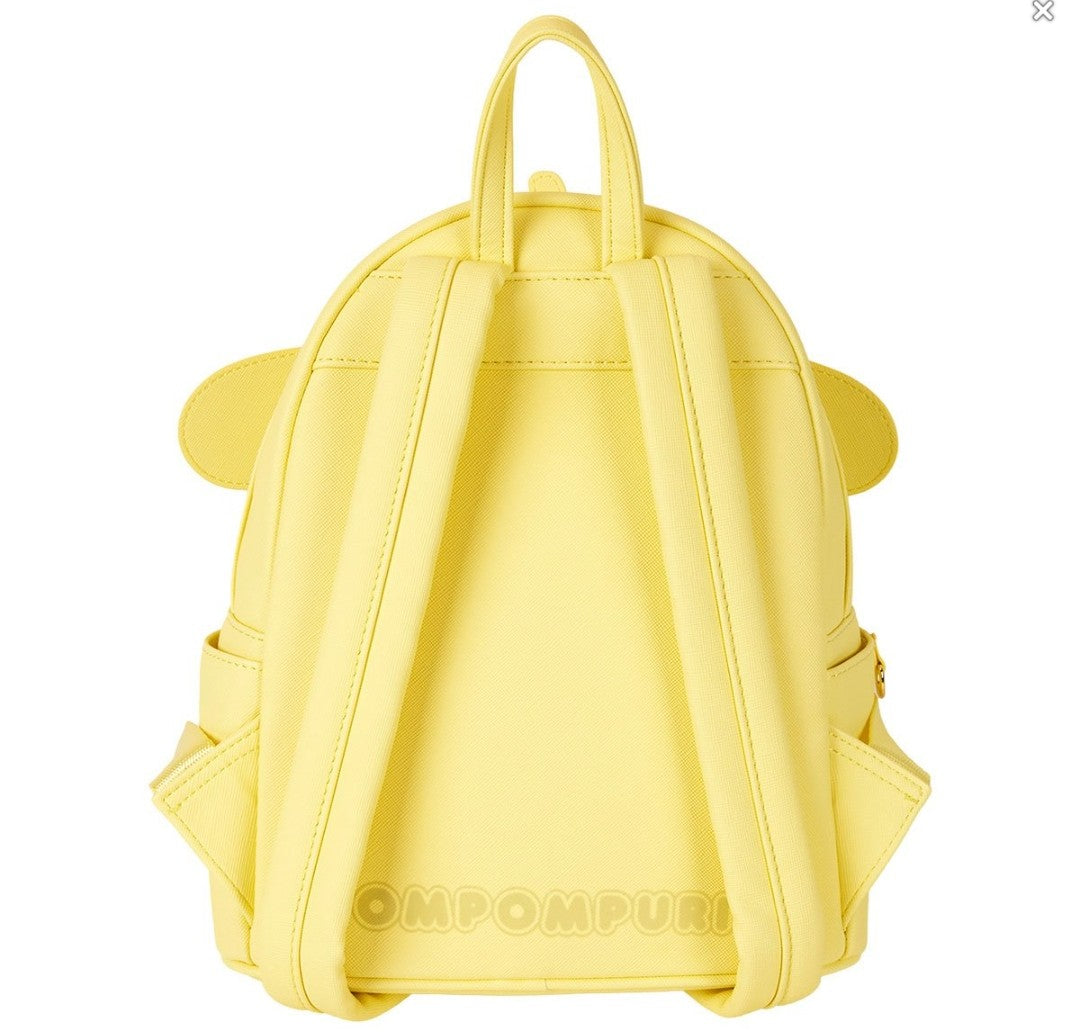 Sierra) Stepping out for cream caramel puddings? Don’t forget to take along this adorable Pompompurin mini backpack! Pompompurin's signature pastel yellow color, along with textured faux leather, make this accessory an elegant stand-out. Appliques of his beret and ears add a touch of character-and Muffin tags along as a faux leather charm. Pack just what you need for a day with friends, sharing smiles wherever you go. This textured faux leather backpack features adjustable padded straps, a sturdy top handle, a front zipped pocket, gold-colored metal hardware, an applique, a faux leather charm, printed and embroidered details with a coordinating inside lining.