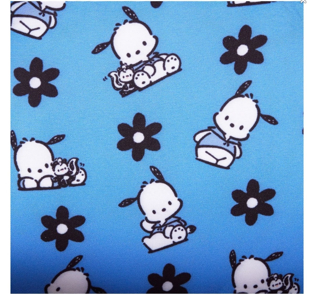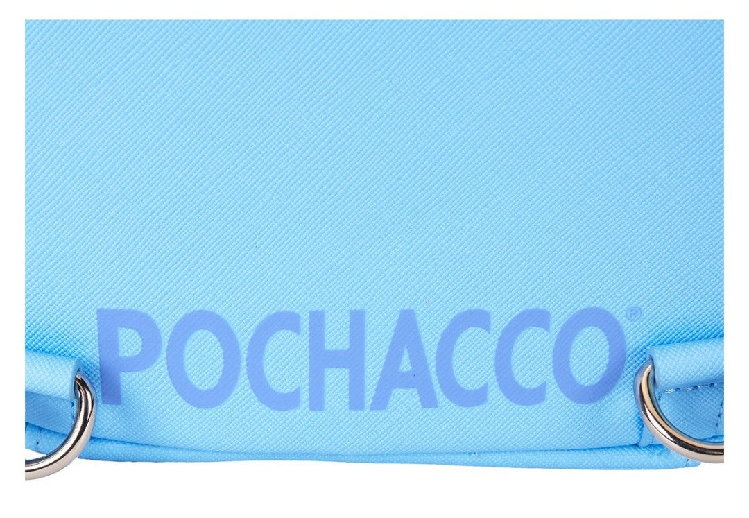 Sierra) Go for that banana ice cream-run in style. And be sure to take along this super cute Pochacco convertible mini backpack. Blue textured faux leather makes this accessory an elegant stand-out. Appliques of Pochacco's ears pop up over the top, and Rachel tags along as a faux leather charm. Pack just what you need for a day with friends, sharing smiles wherever you go. This textured faux leather mini-backpack features adjustable and detachable straps to convert from a crossbody to a backpack, a sturdy top handle, front zipped pocket, silver-colored metal hardware, an applique, a faux leather charm, printed and embroidered details with a coordinating inside lining.