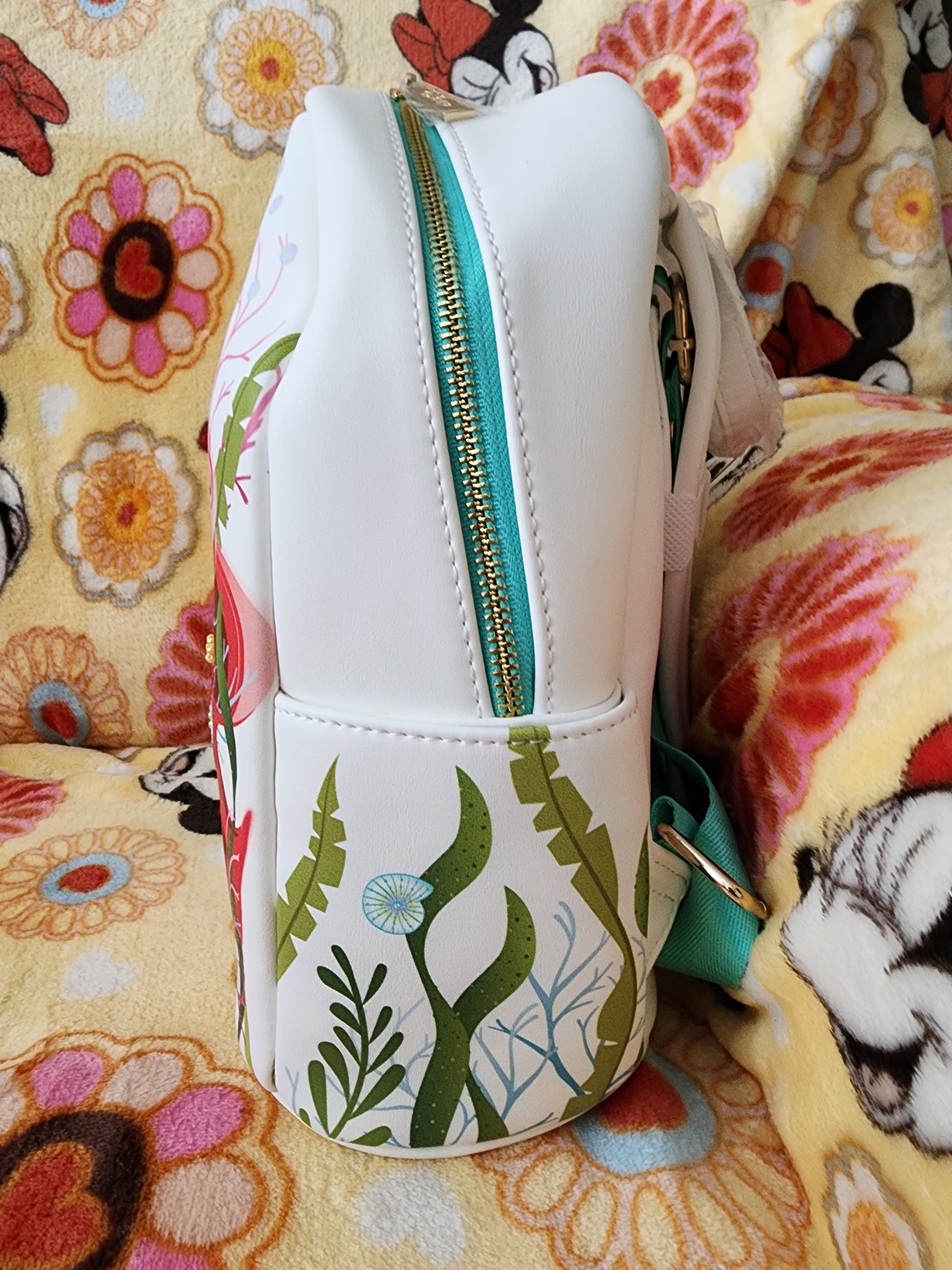 (F)EM3) Awesome Danielle Nicole Disney Ariel Little Mermaid Backpack. This backpack is so adorable and fun. It has a large zipper compartment, with adjustable straps on the back. This is a great backpack to give as a gift.