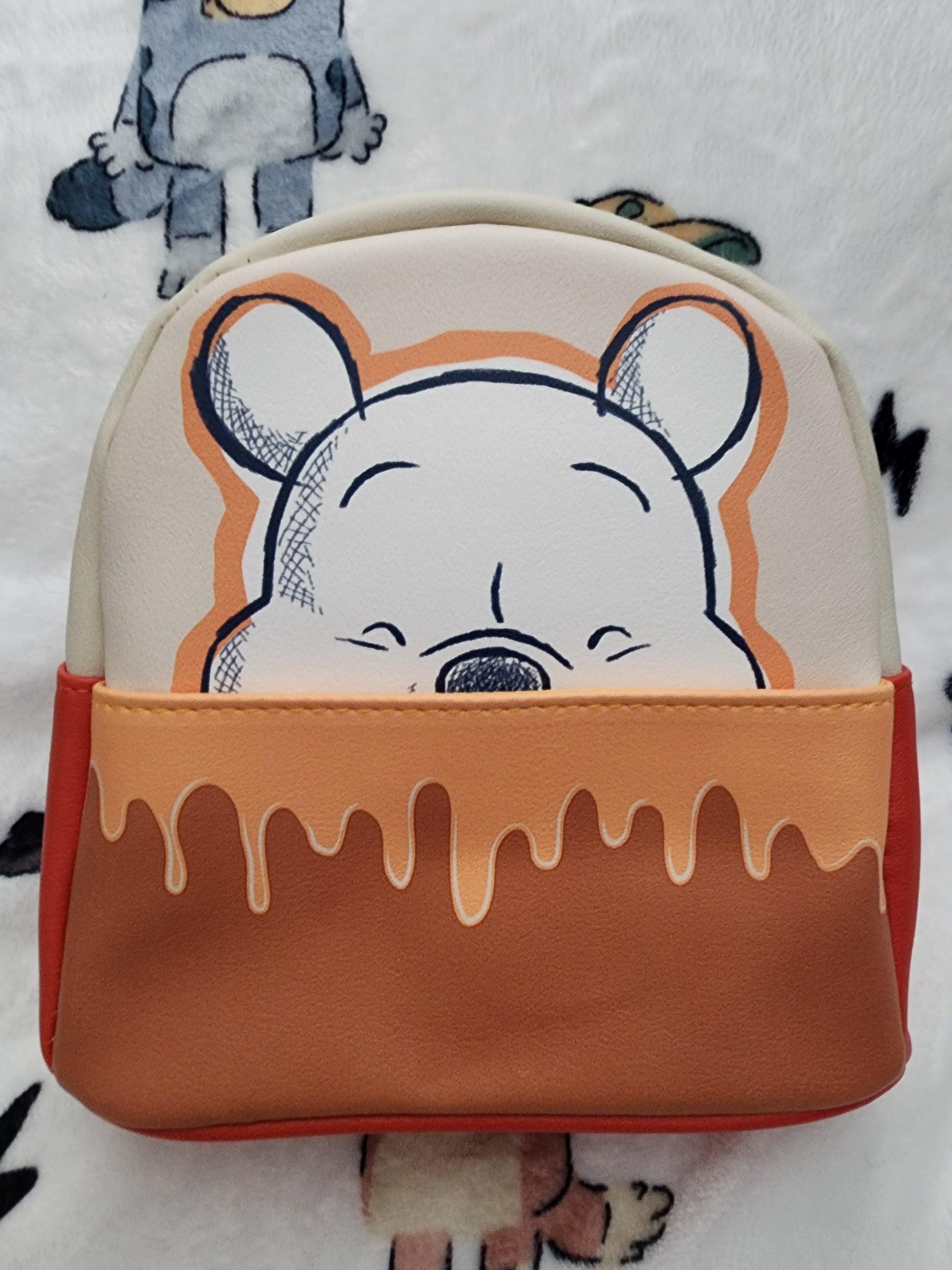 (QI)Awesome and Super Cute Danielle Nicole Disney Winnie the Pooh Mini Backpack Wristlet. It has a large zipper compartment with a wristlet to carry it by on the back. The size is 7"x7".