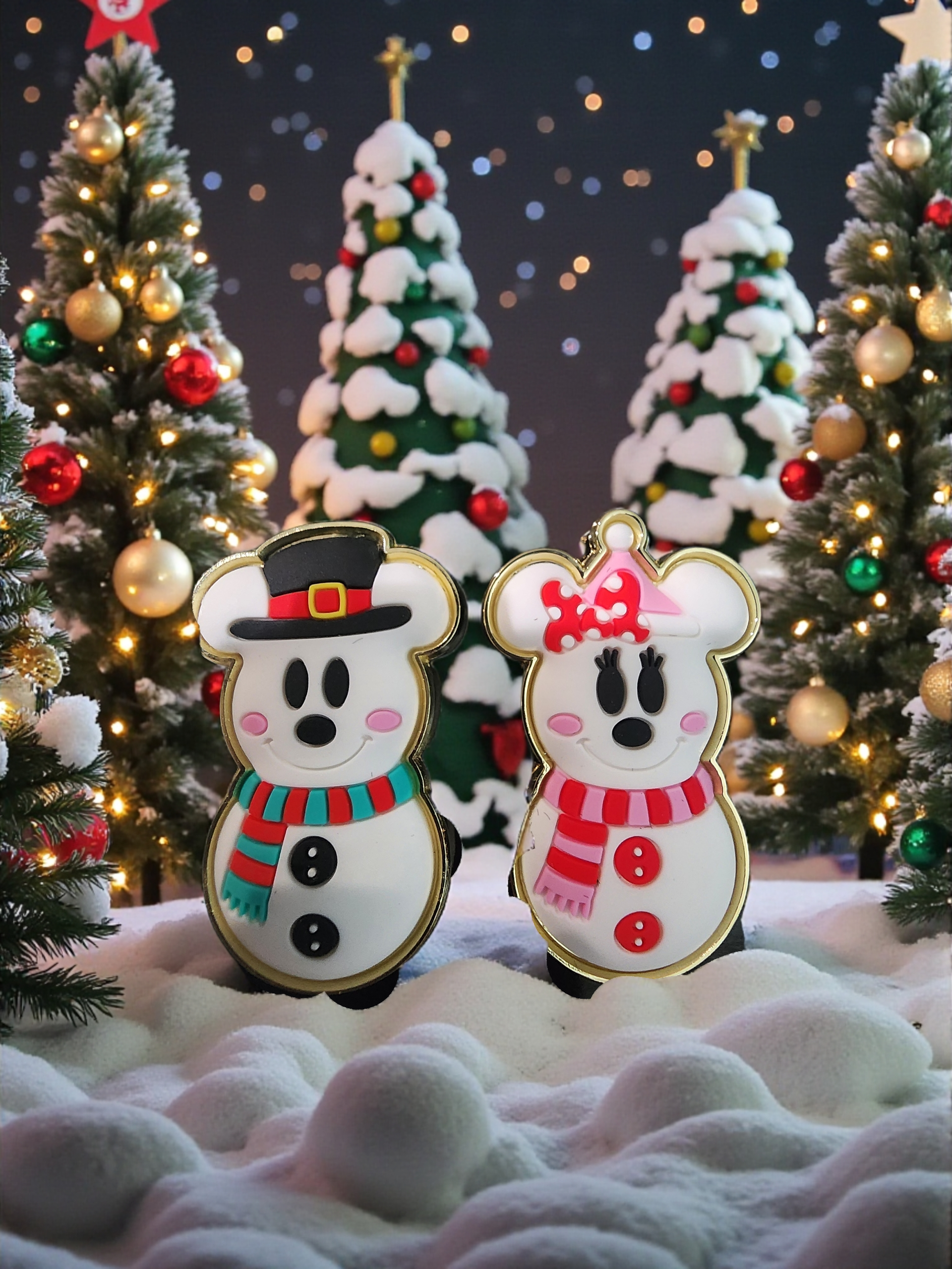 Add a dash of Disney to your holiday! One pin is designed like a Mickey-inspired snowman and the other like a Minnie-inspired snowman—perfect for fans of the famous mice.