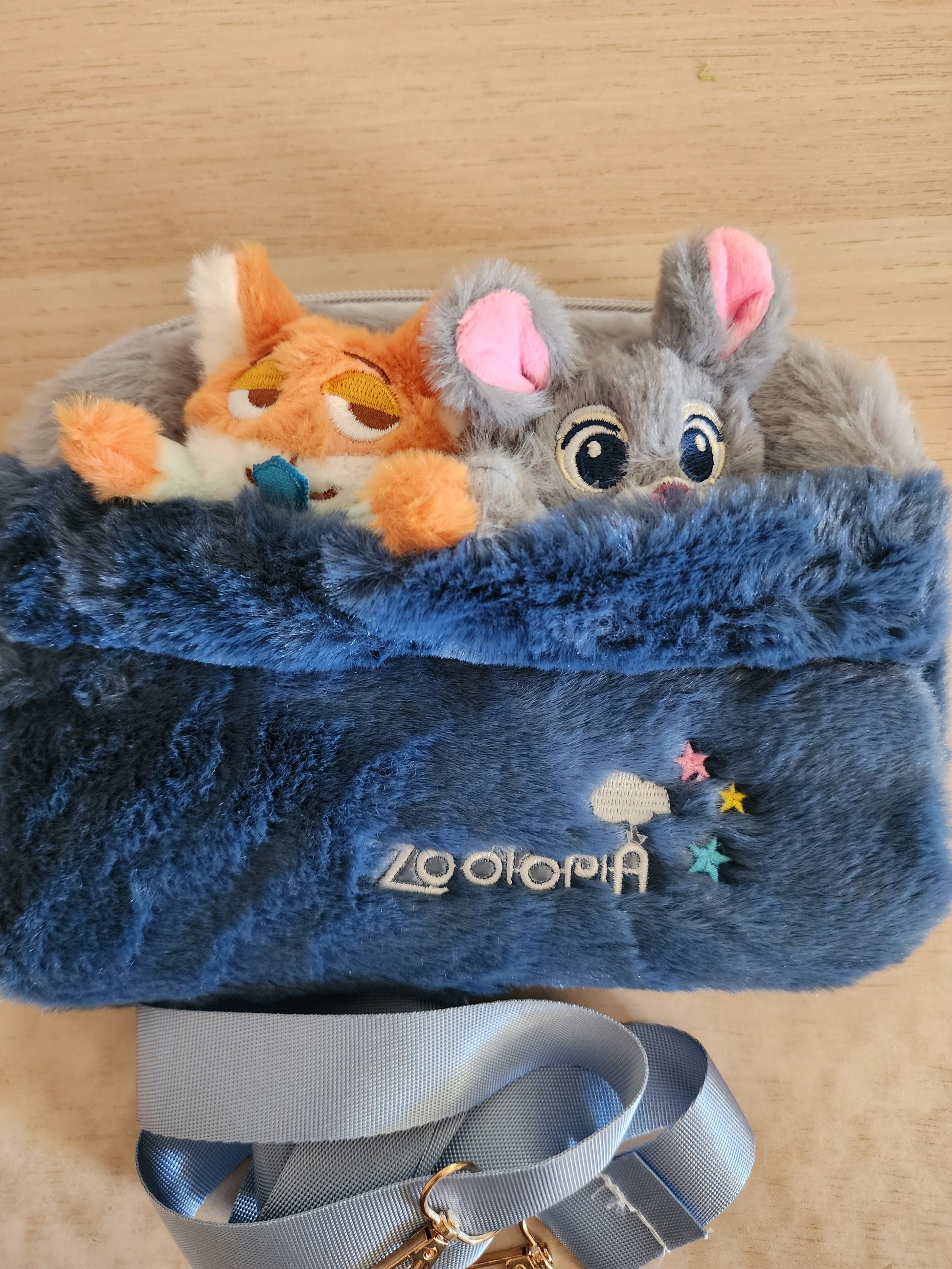 Disney Zootopia Nick and Judy Plush Crossbody Bag. Super cute soft plush Nike and Judy Hopps Crossbody Bag. It has a large zipper compartment and comes with an adjustable strap.