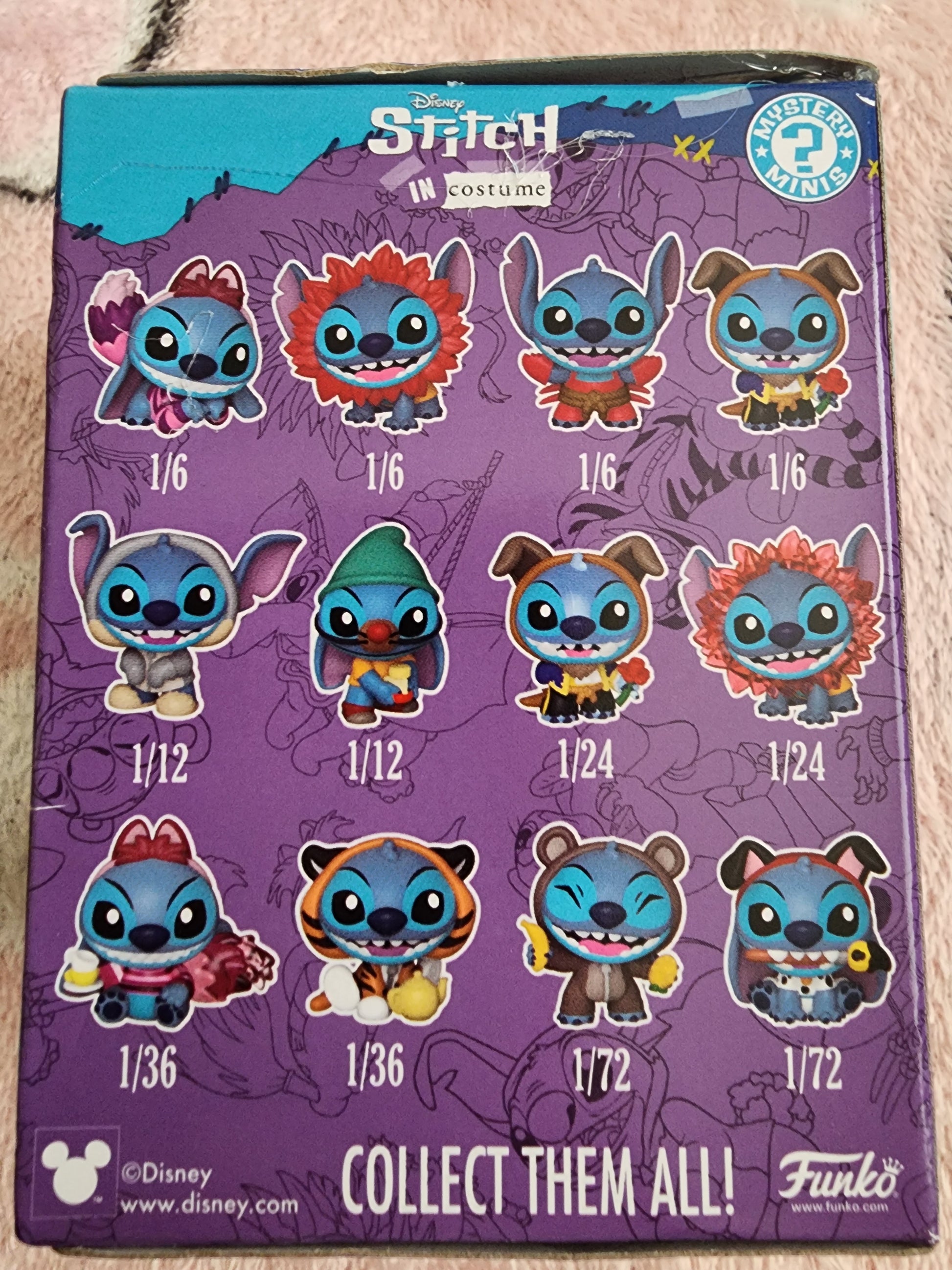 Awesome and Super Cute Funko Minis Disney Stitch in Costumes Mystery Figures. There are 12 different figures to collect. They manage from 1/6 to 1/72. Have fun collecting.