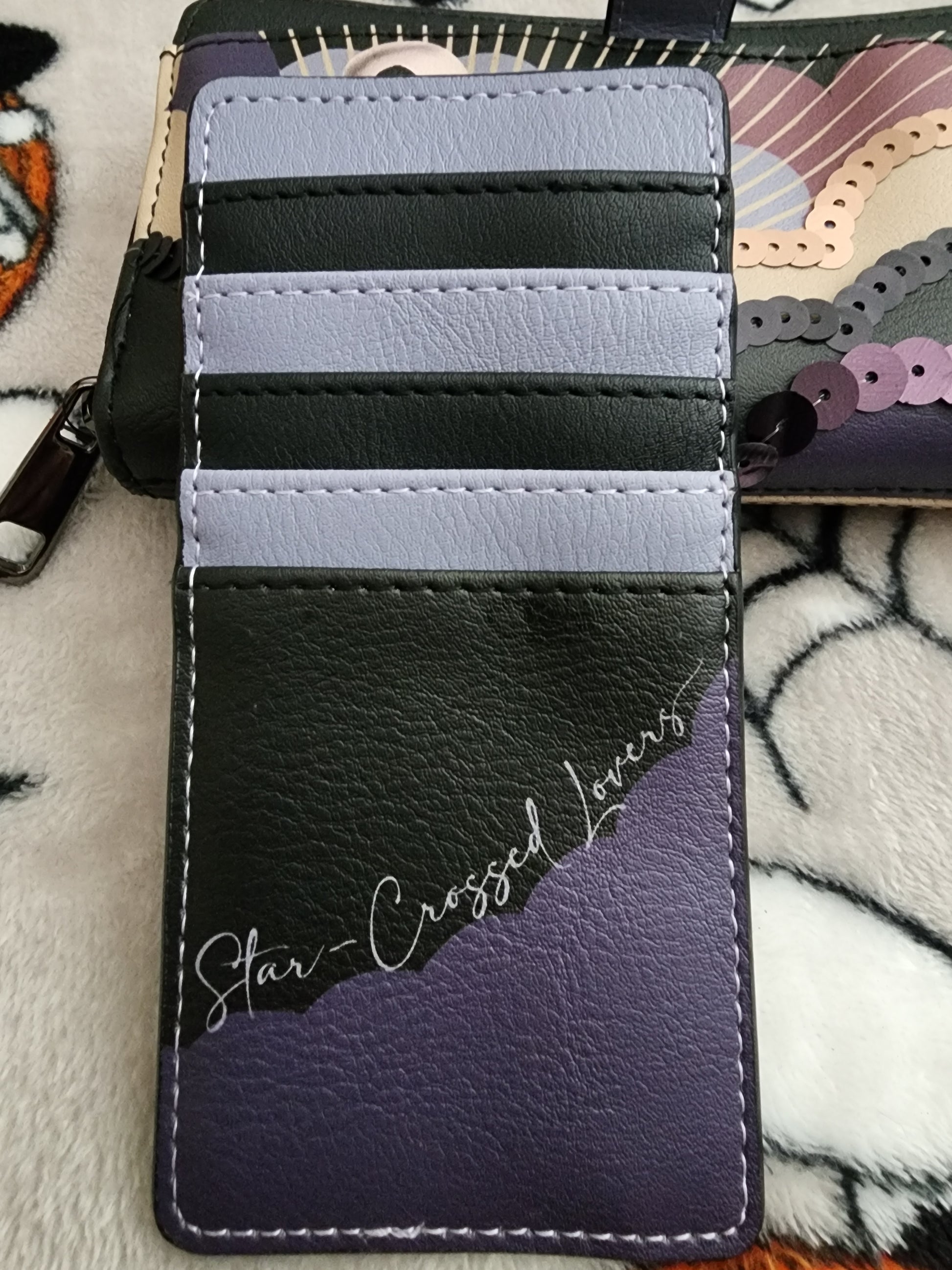Awesome and Super Cute Her Universe Disney Nightmare Before Christmas Jack and Sally Wallet. This wallet has an all-around zipper closure with a separate front snap removable card holder with slots for credit cards and a slot on the back for bills. The wallet also has credit cards slots and an ID slot on the inside of the wallet. You are going to love this wallet. This is great for everyday use.