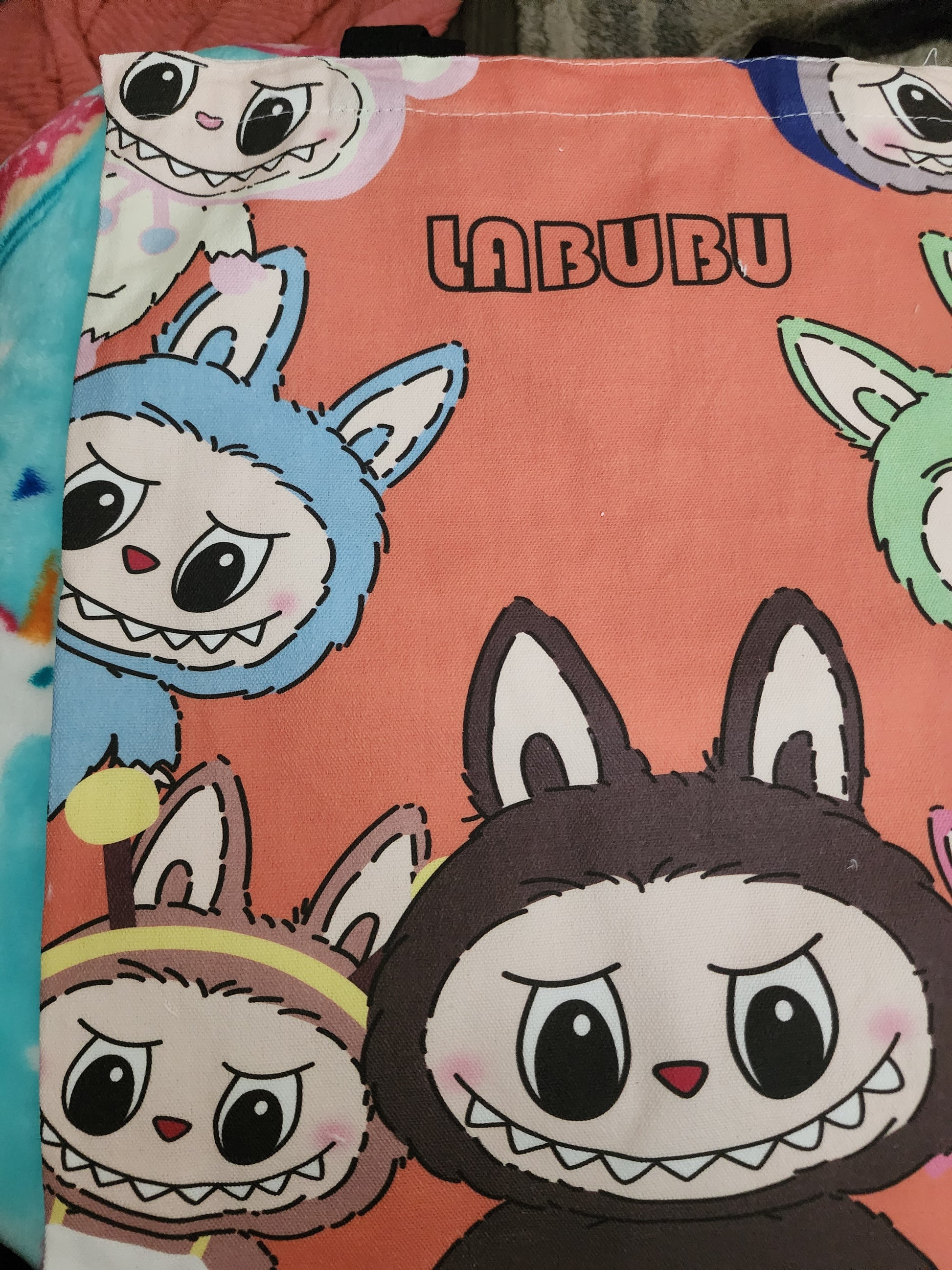 Awesome and Super Cute Labubu Group Shot Canvas Tote Bag/Book Bag. This bag is perfect to use for the grocery store or a trip to Target. It also makes a great book Bag for school or a trip to the book store.