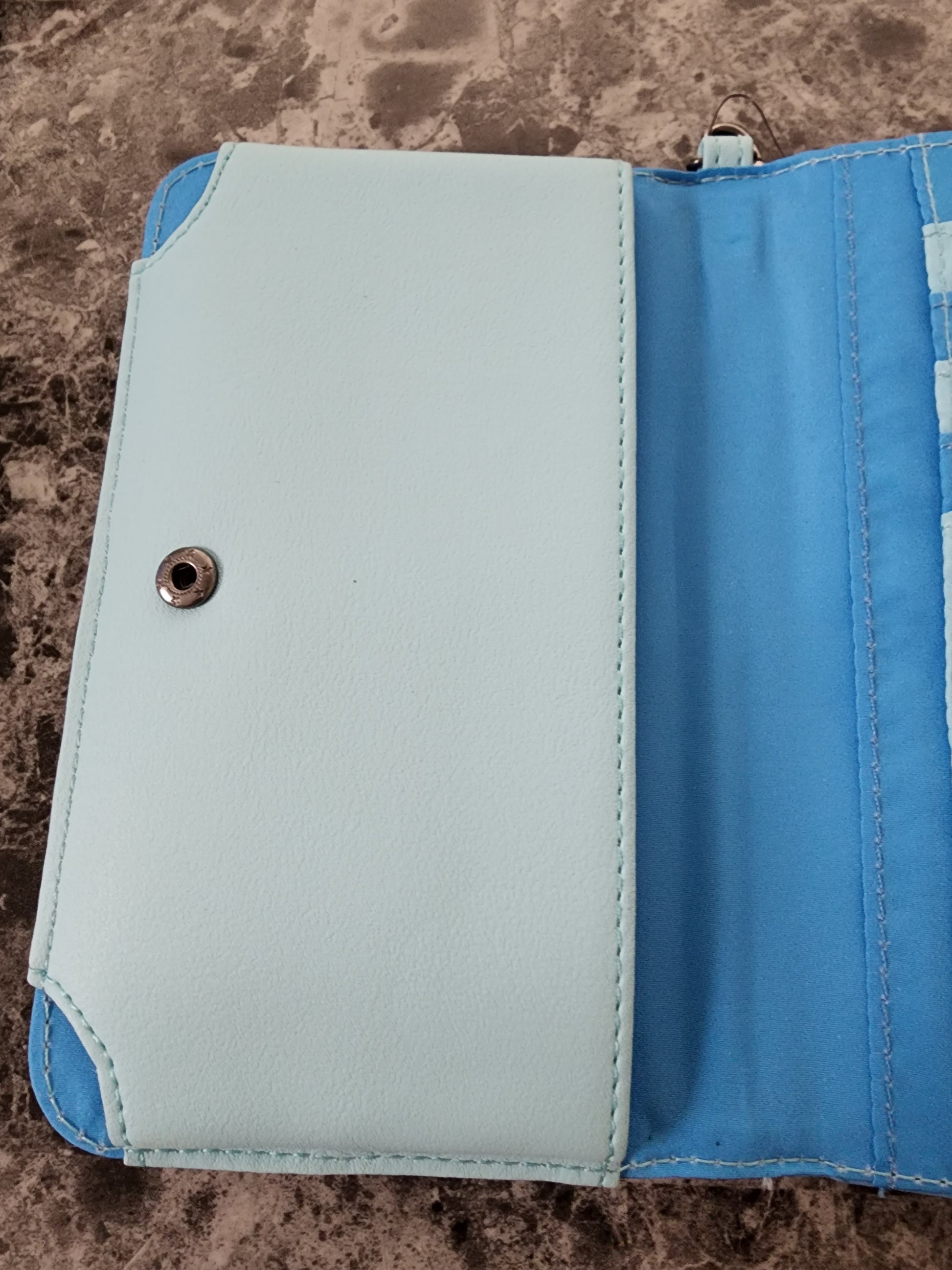 Awesome Loungefly Disney Little Mermaid tech wallet. It has a snap closure with slots for credit cards and a ID slot. There is also a large compartment for your cellphone. It can fit a Samsung galaxy s21 and Iphone 14