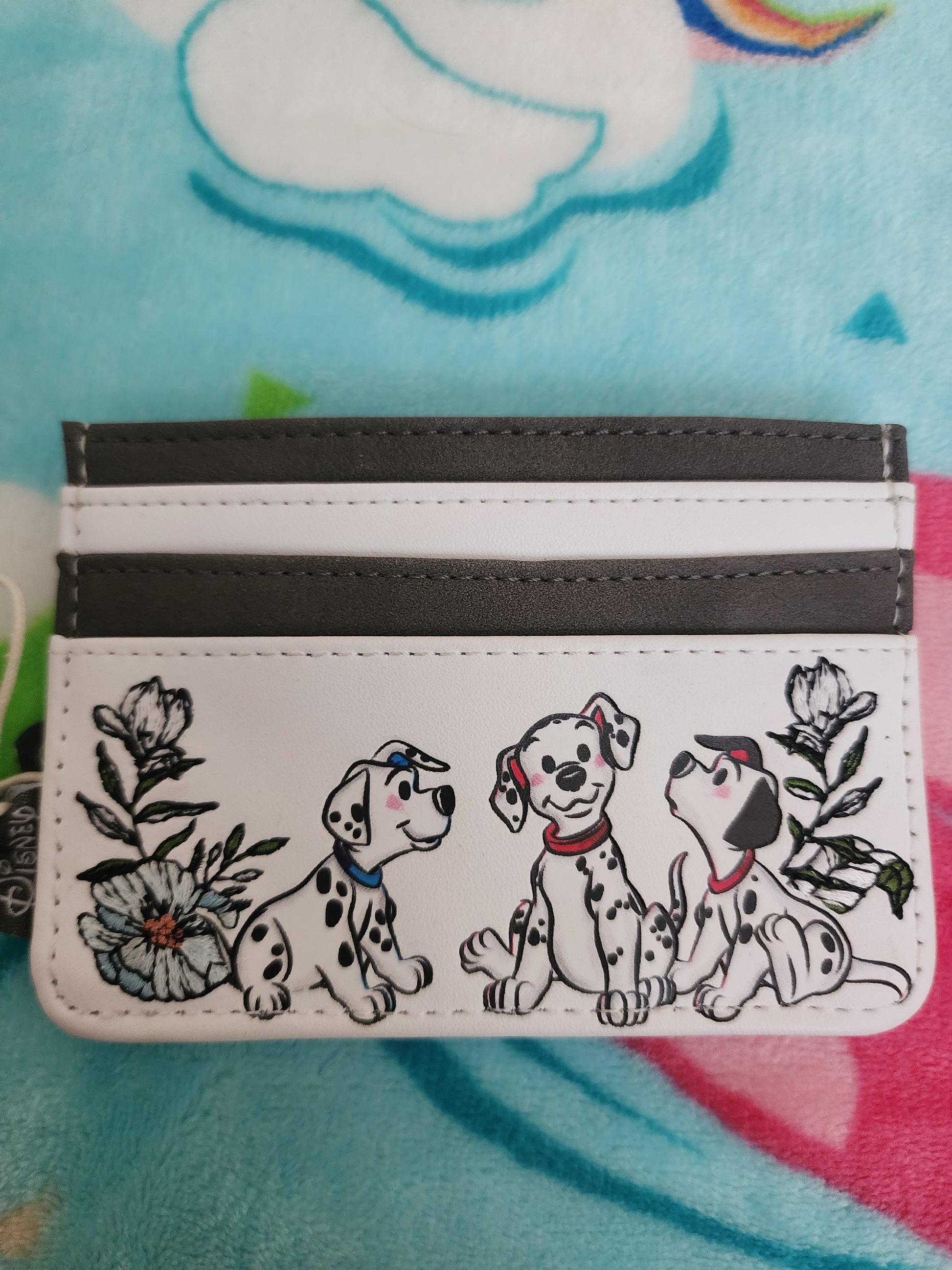 Awesome Loungefly Disney 101 Dalmatians card holder. It has slots to hold credit cards. The flowers are embroidery on. Great for everyday use.