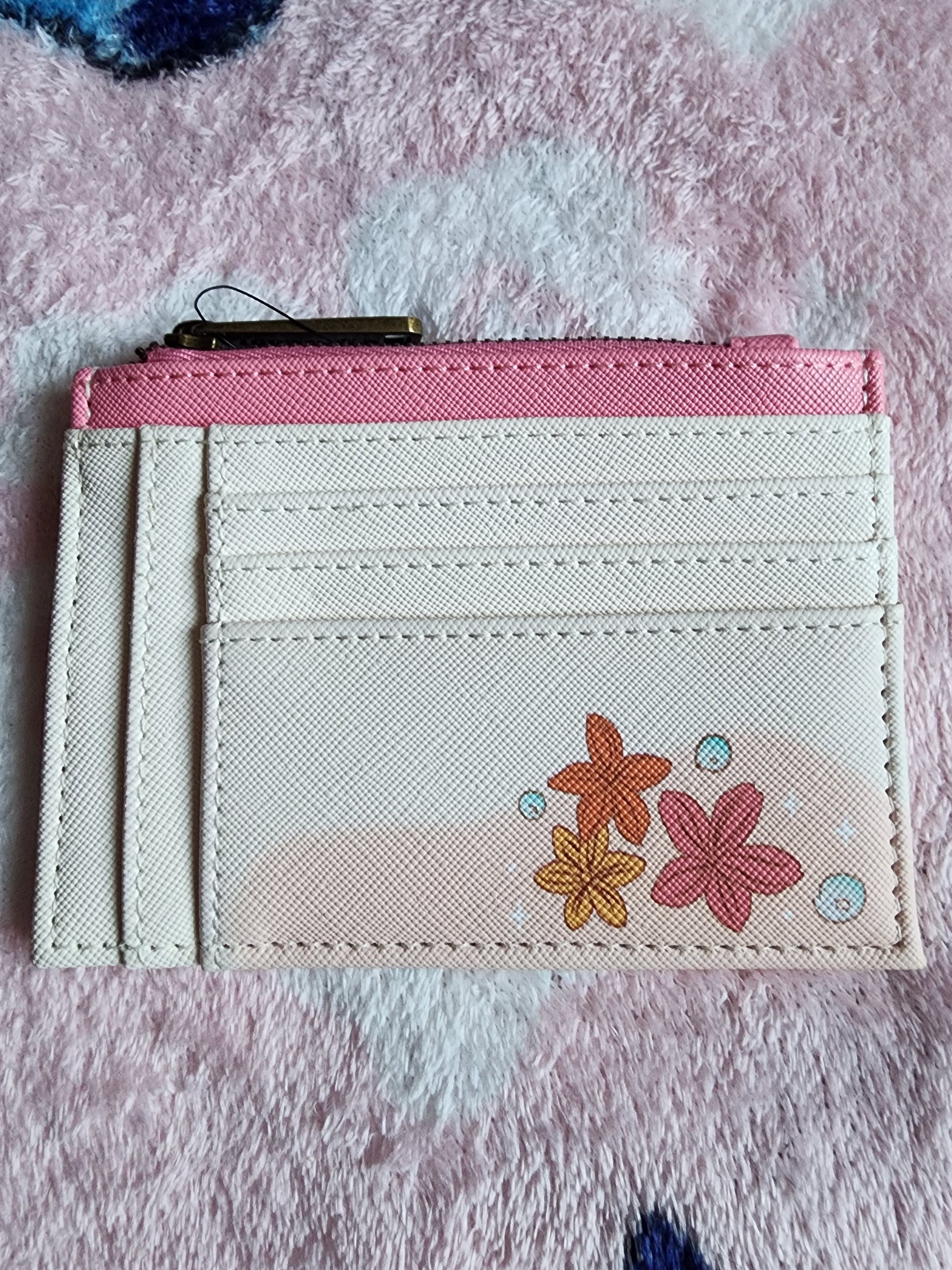 Awesome Loungefly Disney Ariel and Flounder Little Mermaid Card Holder with a zipper compartment. It can hold credit cards. The flowers are embroideried. It's great for everyday use.