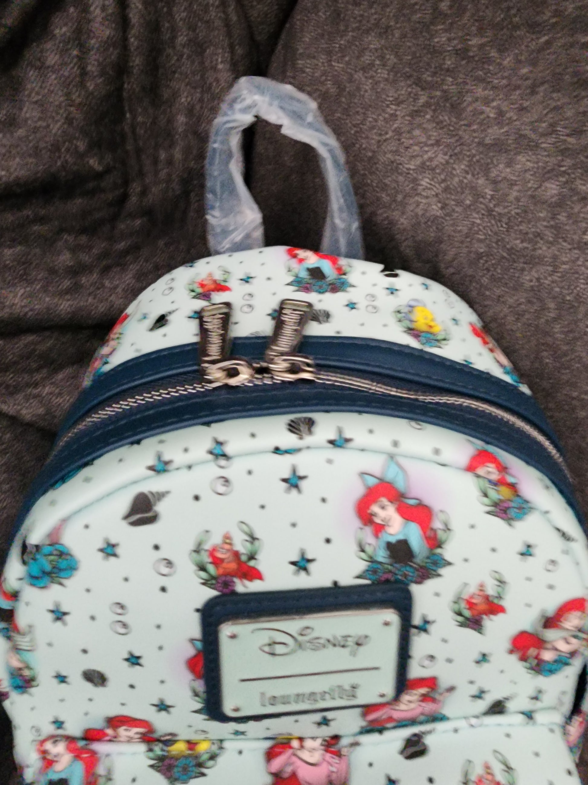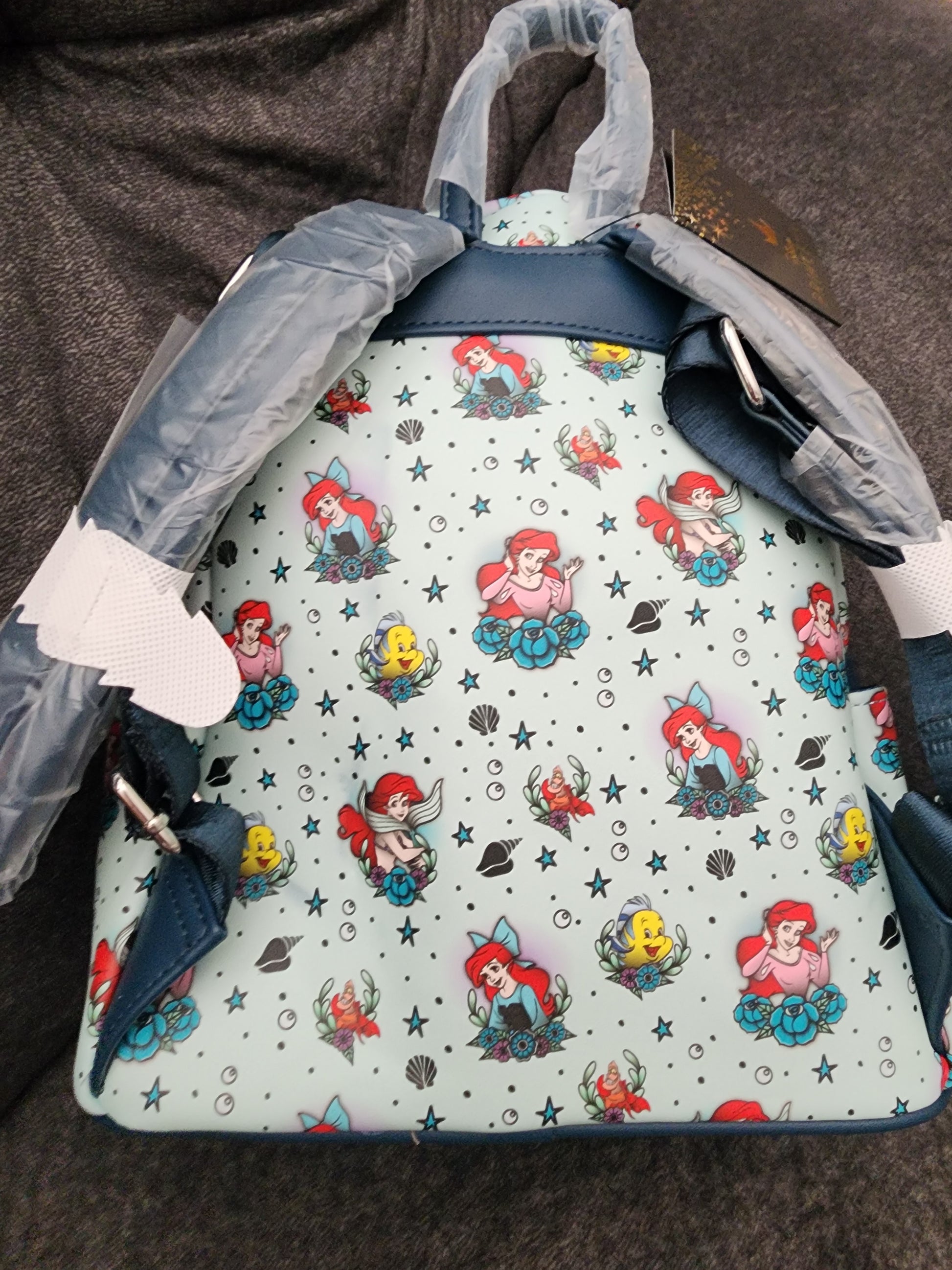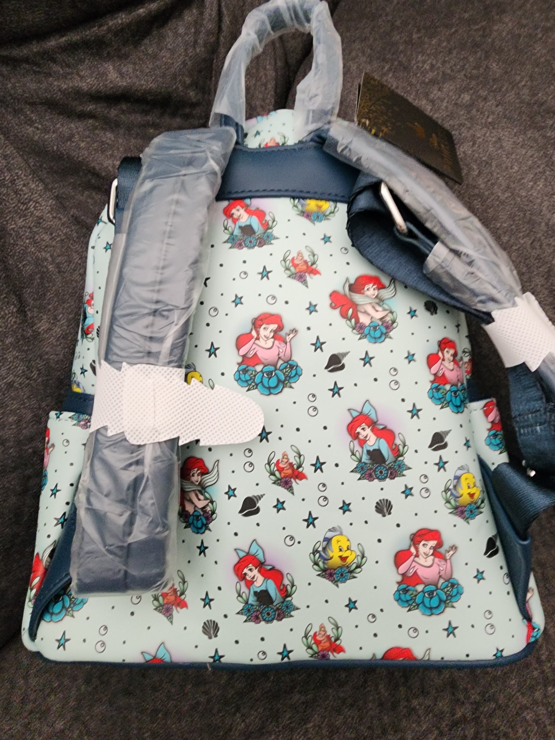(AA)Awesome Loungefly Disney Little Mermaid Backpack. It has 2 zipper compartments with adjustable straps on the back. Great for everyday use. Fun summer bag.
