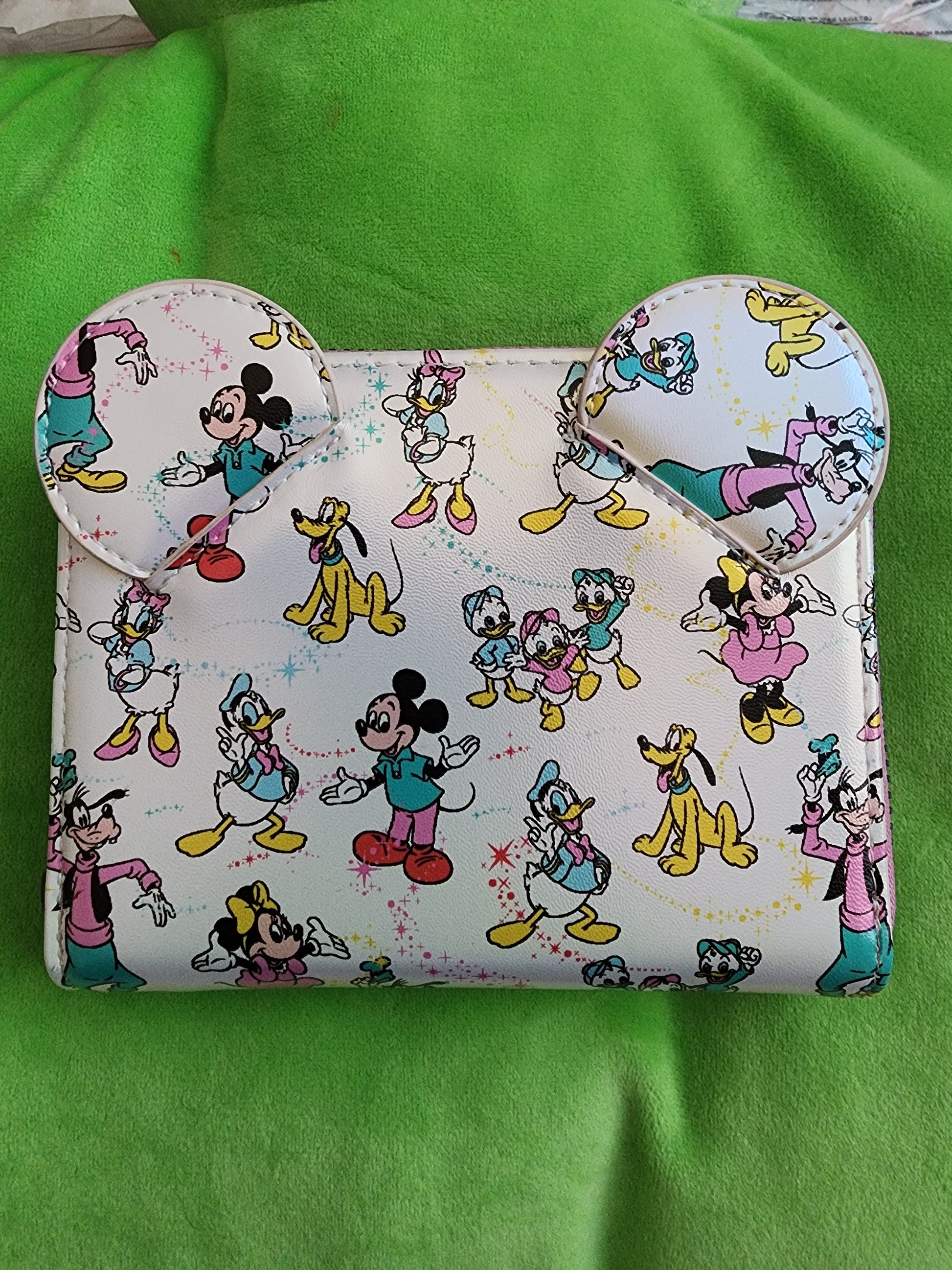 Awesome Loungefly Disney Mickey and Friends 100th Anniversary Wallet. All your friends are here Mickey Mouse, Minnie Mouse, Donald, Daisy, Goofy, and Pluto. It has an all-around zipper closure with slots for credit cards and an ID slot. Great for everyday use.