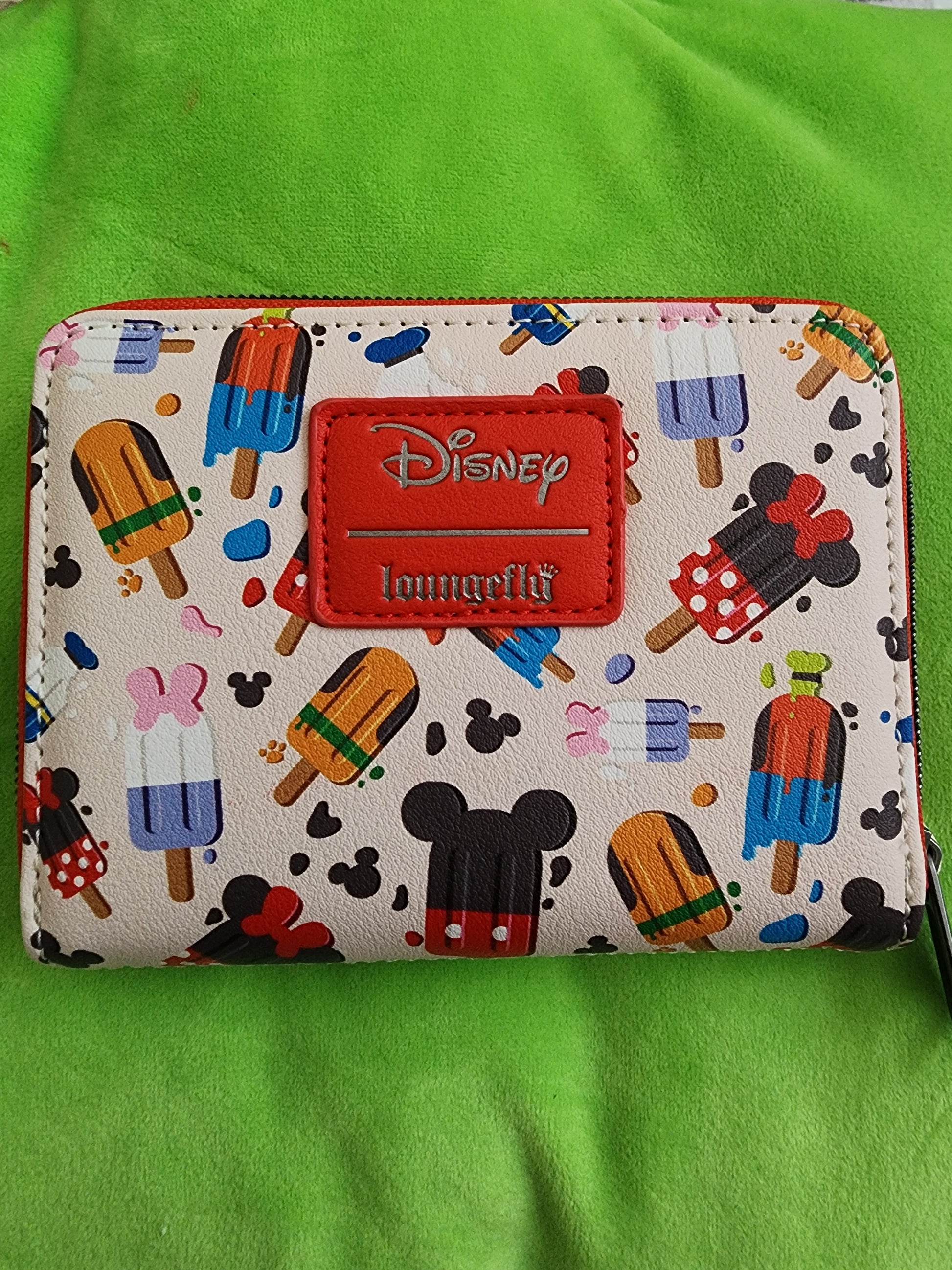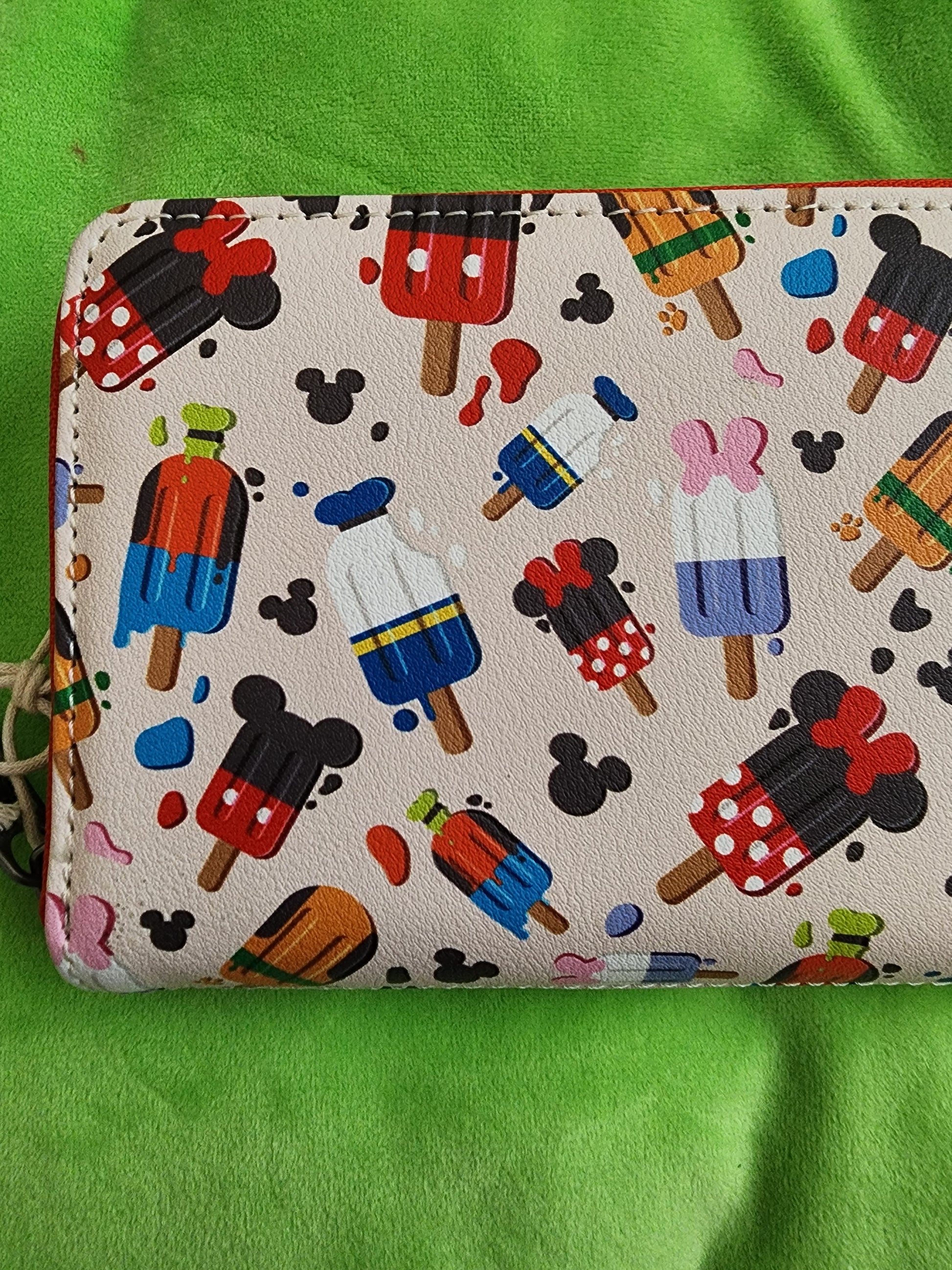Awesome Loungefly Disney Mickey and Friends Popsicles Wallet. It has slots for credit cards and an ID slot. There is a small slot you can put bills in. This is a great gift for your loved one.
