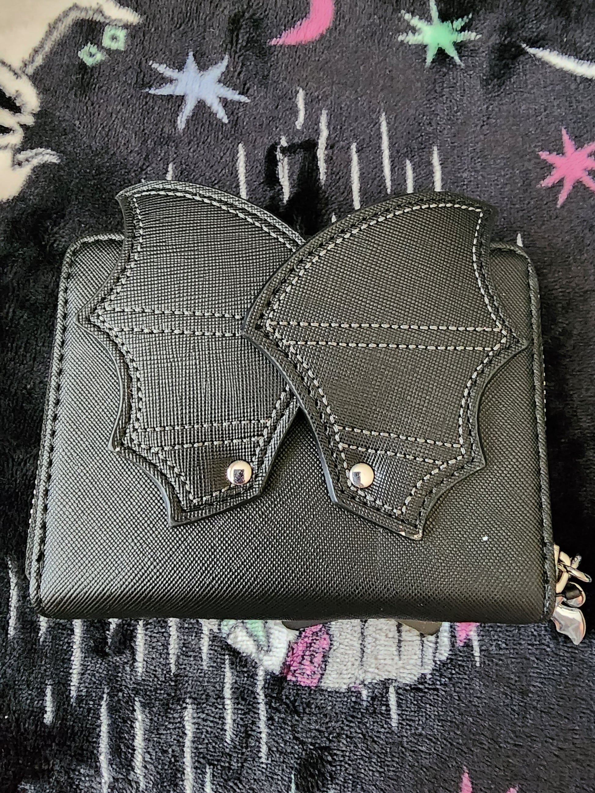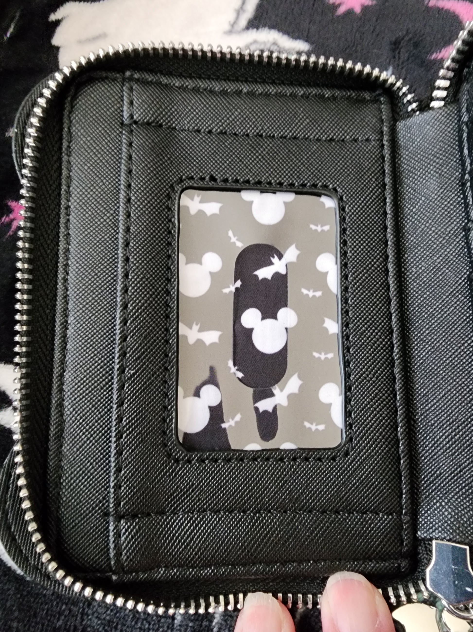 Awesome Loungefly Disney Mickey Mouse as a Vampire Halloween Wallet. It has an all-around zipper closure with slots for credit cards and a ID slot. This wallet glows in the dark. Great for Halloween.