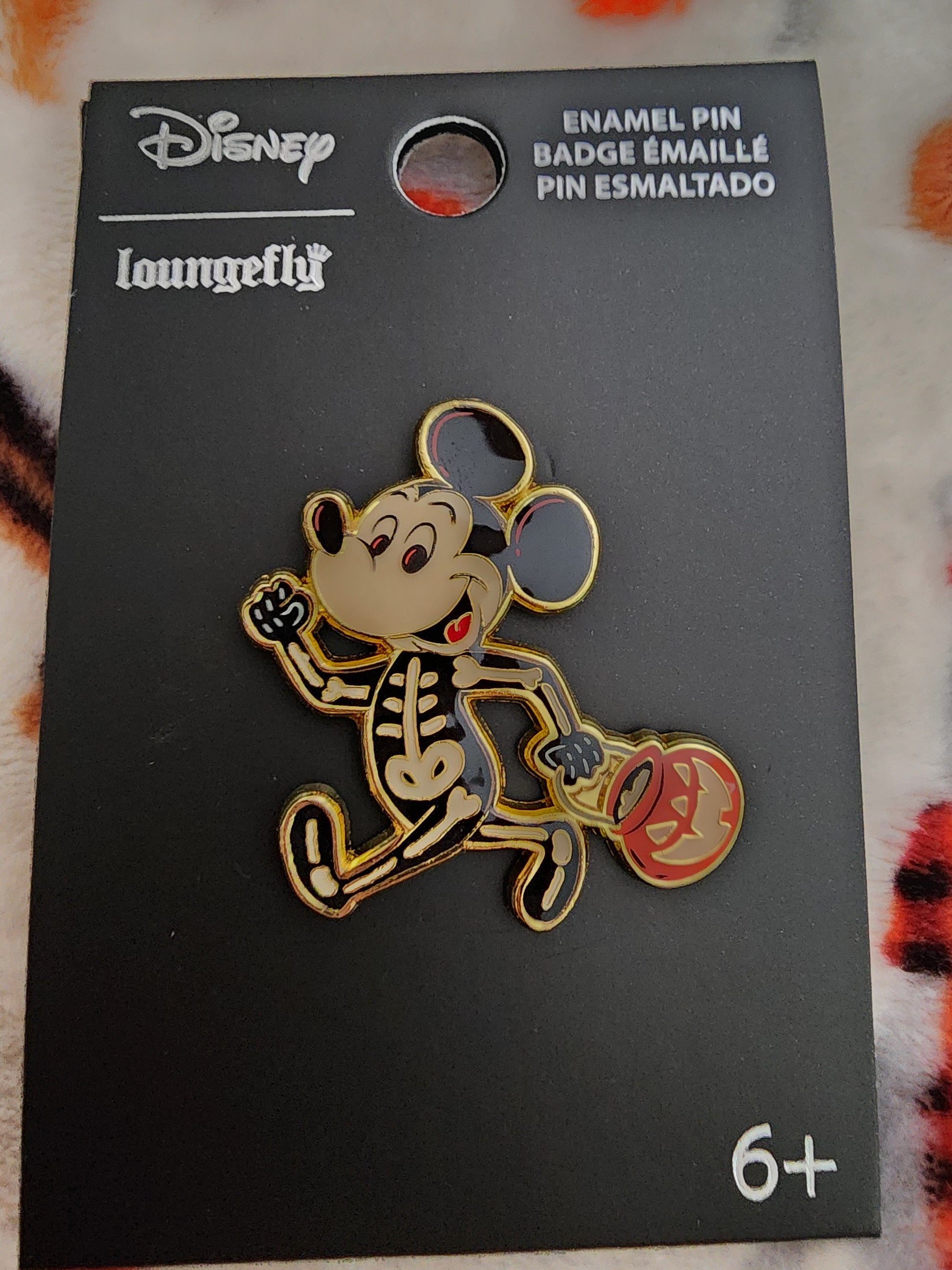 Awesome and Super Cute Loungefly Disney Mickey Mouse Skelton Halloween Pin. This pin has Mickey as a Skelton out trick or treating on Halloween. Have fun collecting.