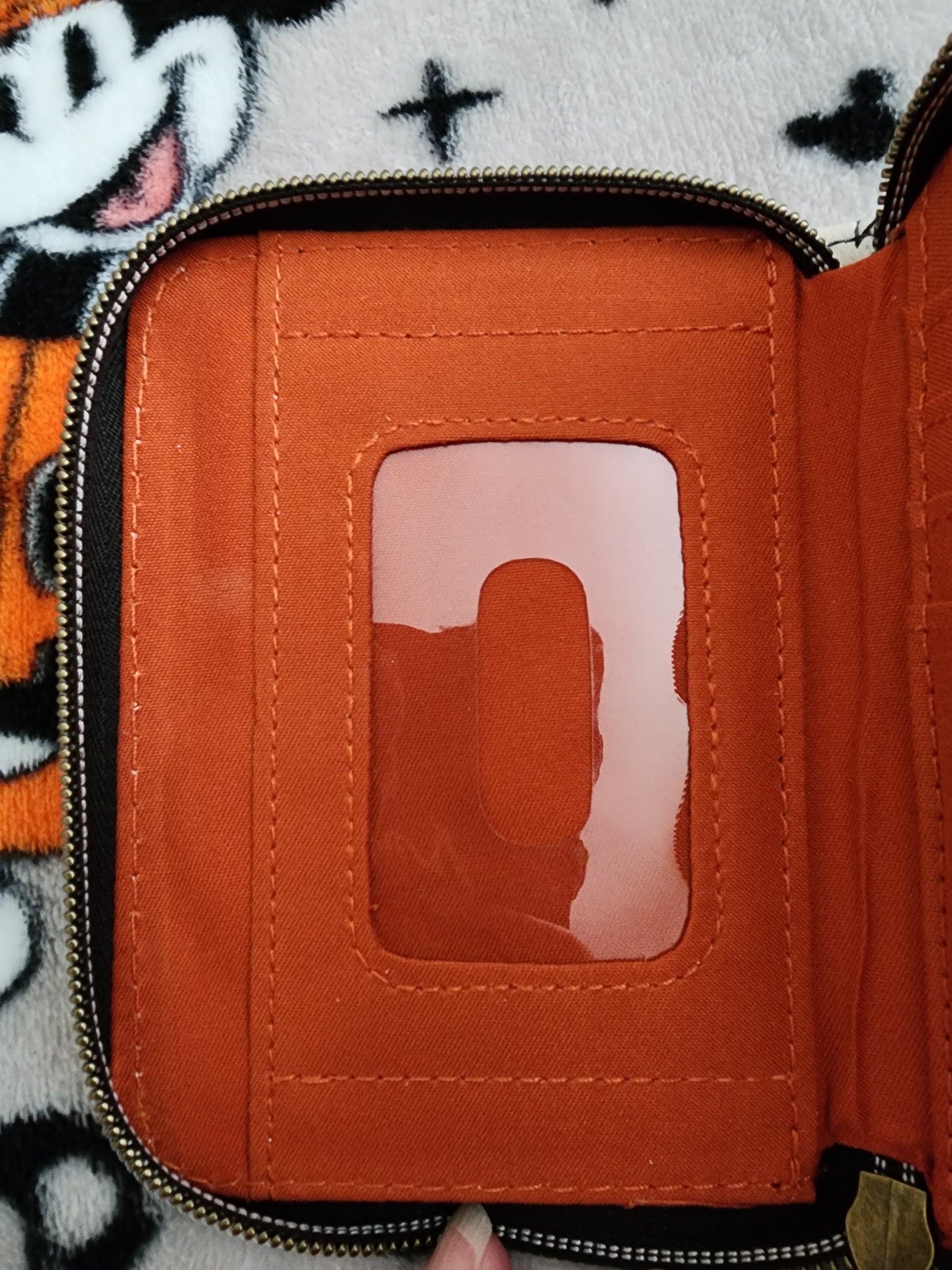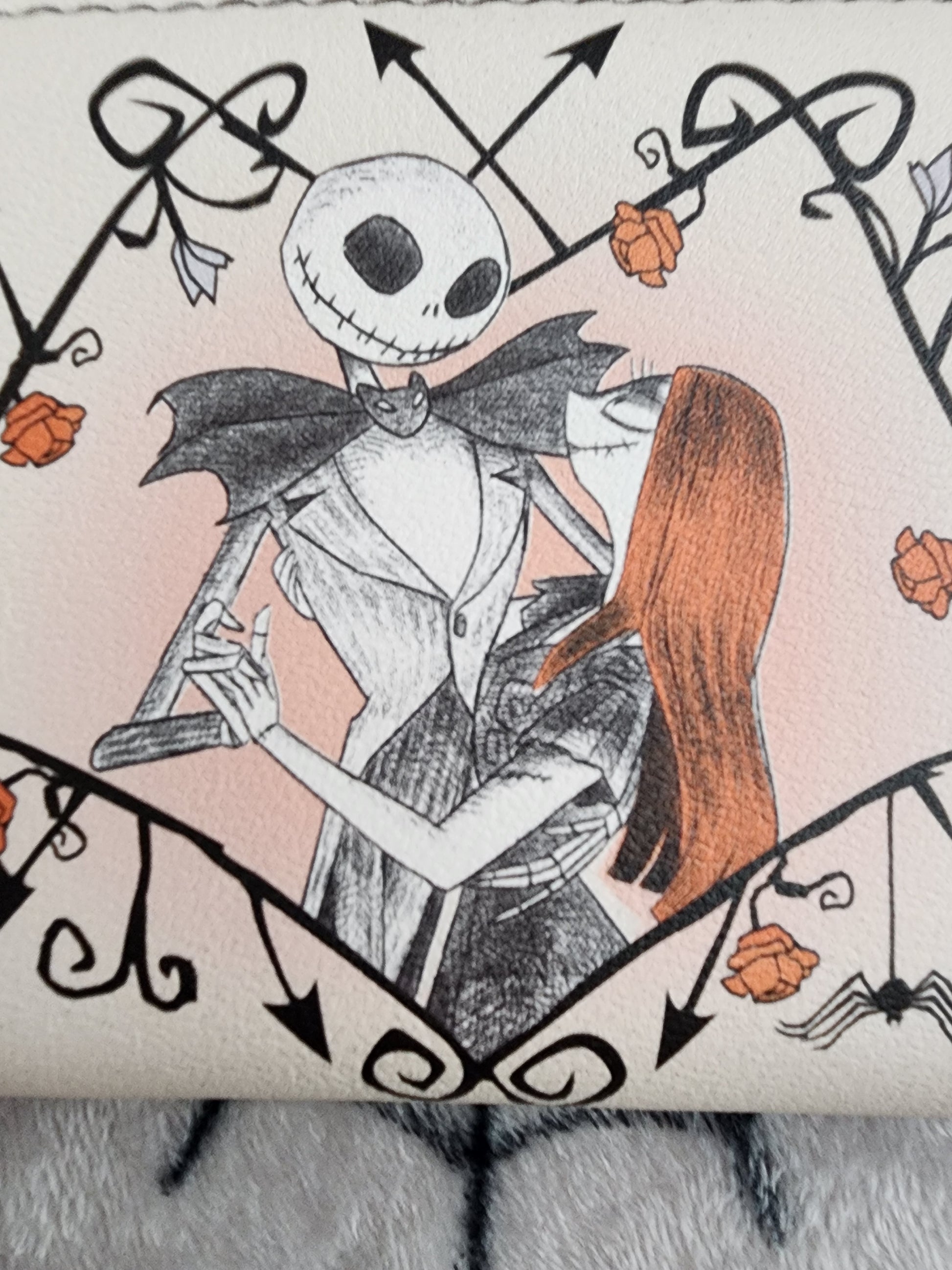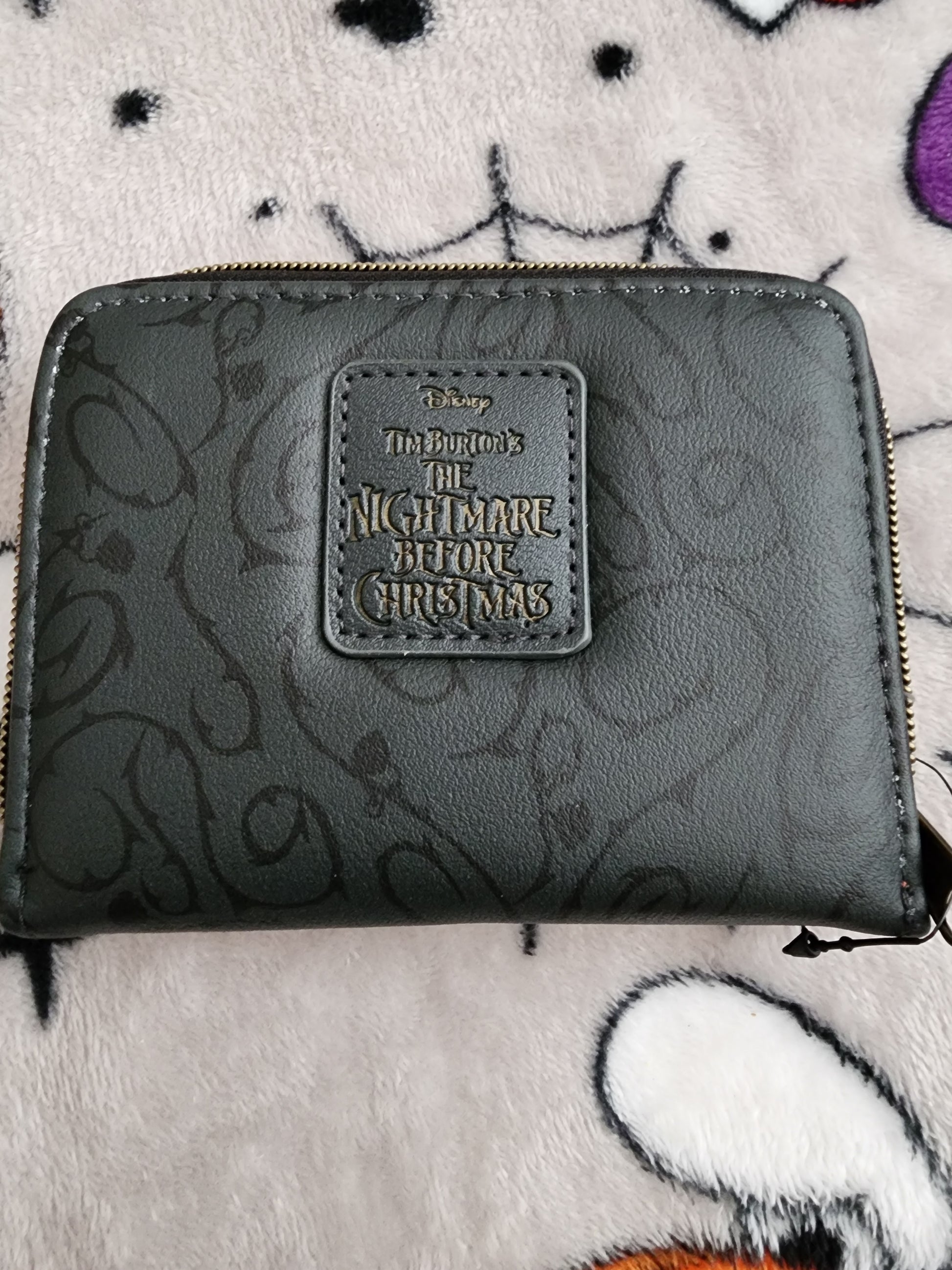 Awesome and Super Cute Loungefly Disney Nightmare Before Christmas Jack and Sally Iron Vine Wallet. This wallet has an all-around zipper closure with slots for credit cards and an ID slot. This is great for everyday use.