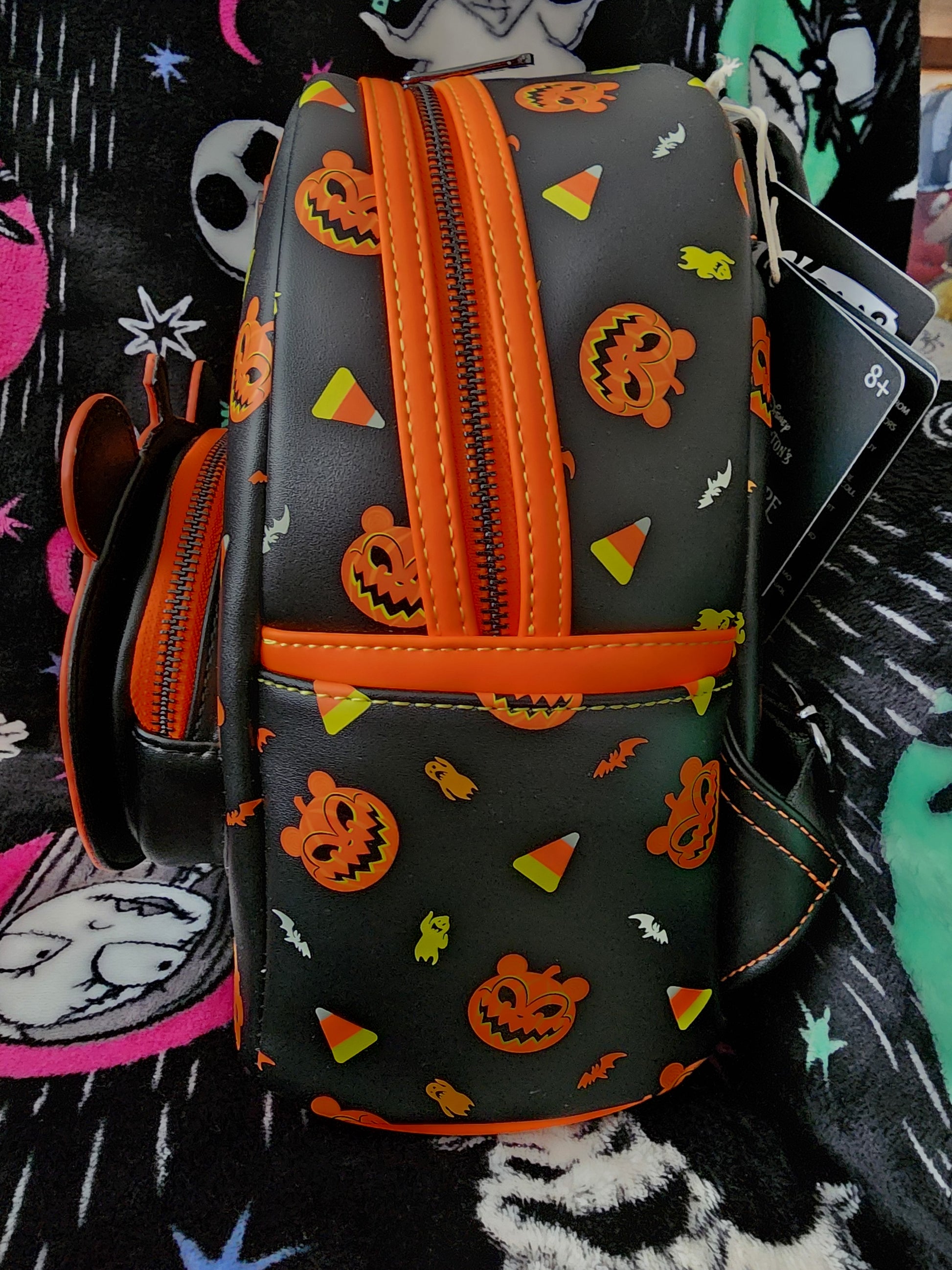 (BoxD)Awesome Loungefly Disney Nightmare Before Christmas Scary Teddy as a Pumpkin Backpack. It has 2 zipper compartments one large one and a small one on the front. There are adjustable straps on the back. This backpack also glows in the dark. Great for everyday use or perfect for Halloween.