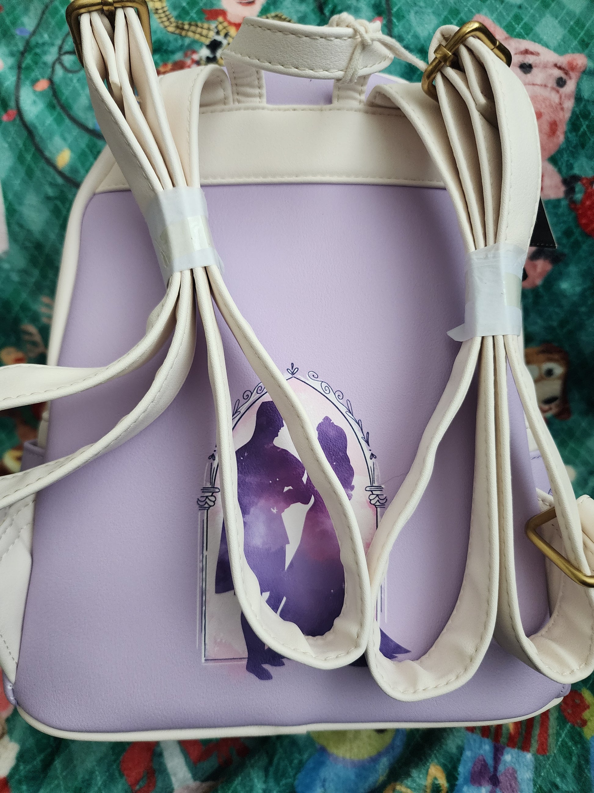 (QK)Awesome Loungefly Disney Sleeping Beauty 65th Anniversary Backpack. This is a great bag for a collector that is collecting all of the Disney Anniversary bags. It has 2 zipper compartments with adjustable straps on the back of the bag. This is a great looking bag. Perfect gift for your loved one.