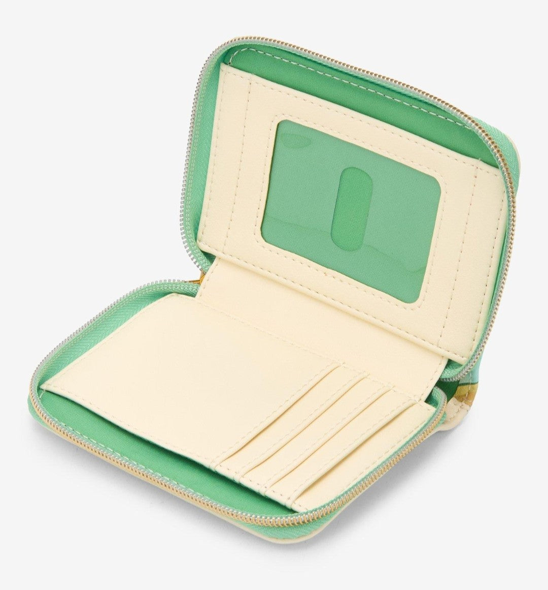 There's nothing like spending your holidays at the beach! This mini zip wallet shows Stitch in a Santa hat hugging Scrump on the beach on the front, and Scrump underneath two palm trees decorated with string lights on the back. Inside, there are card and cash slots, plus clear ID display.