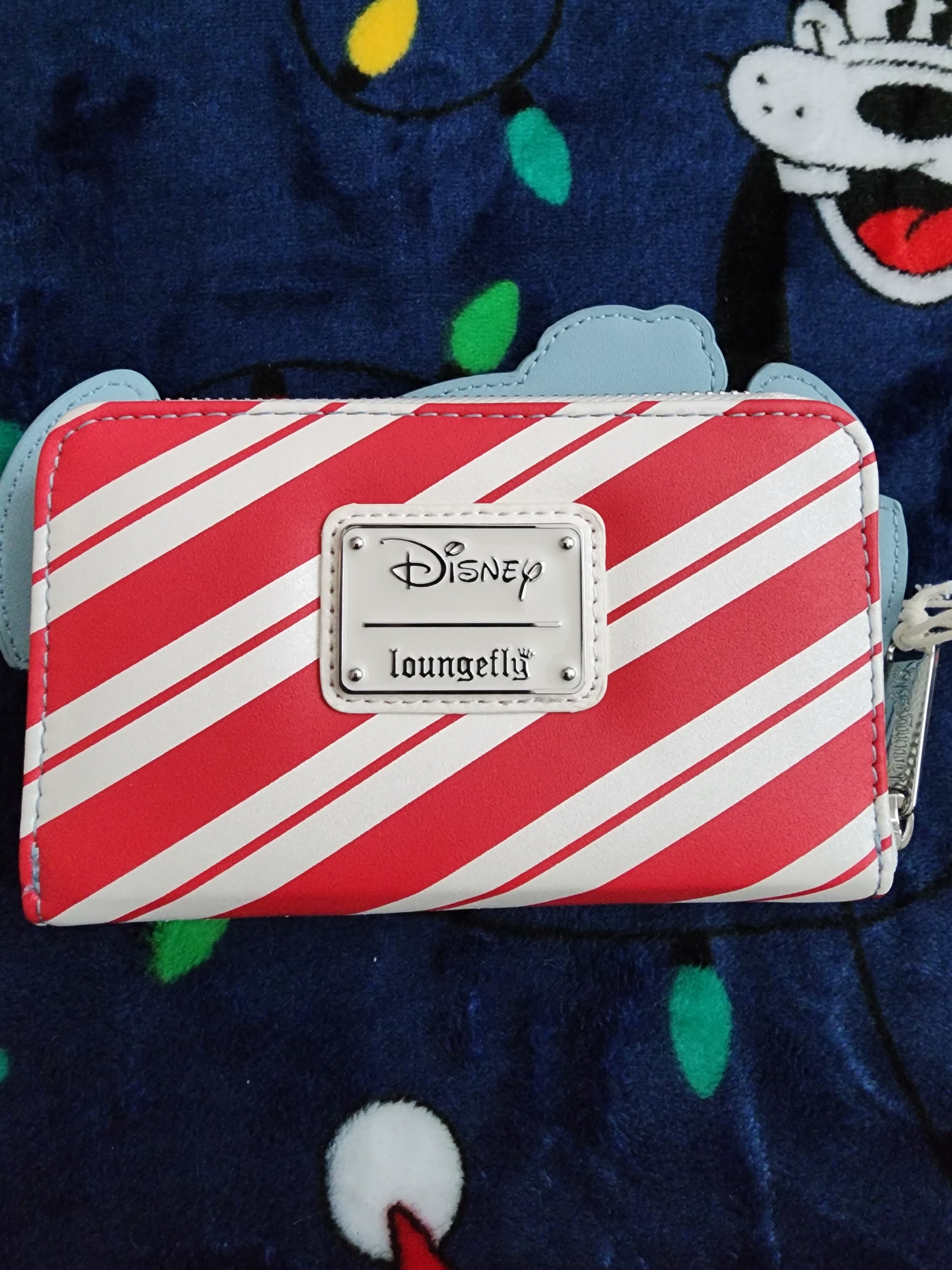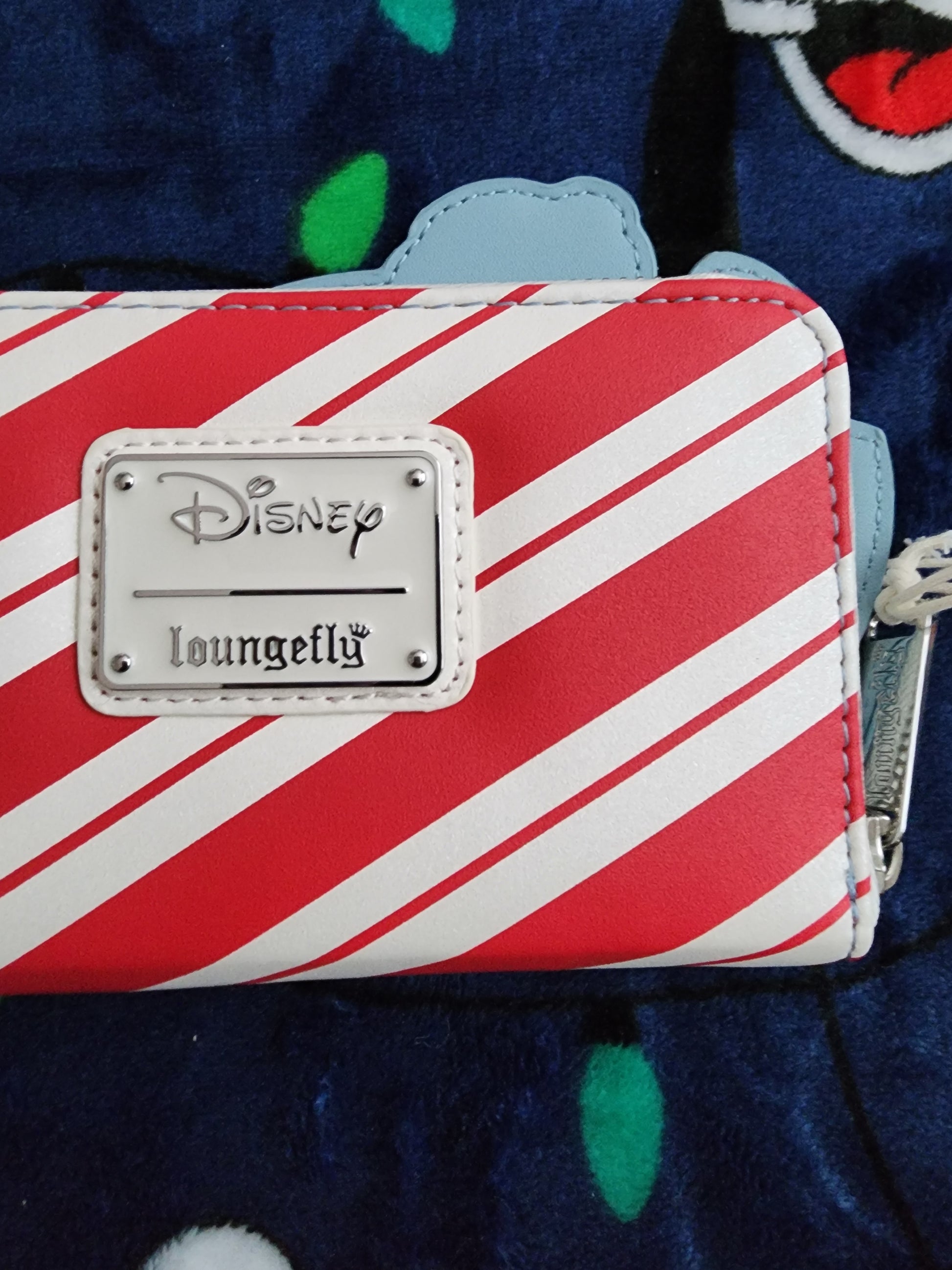 Awesome Loungefly Disney Stitch Santa Hat Holiday Wallet. It has a zipper closure with slots for credit cards and an ID slot. Great for everyday use and perfect for the upcoming holidays.