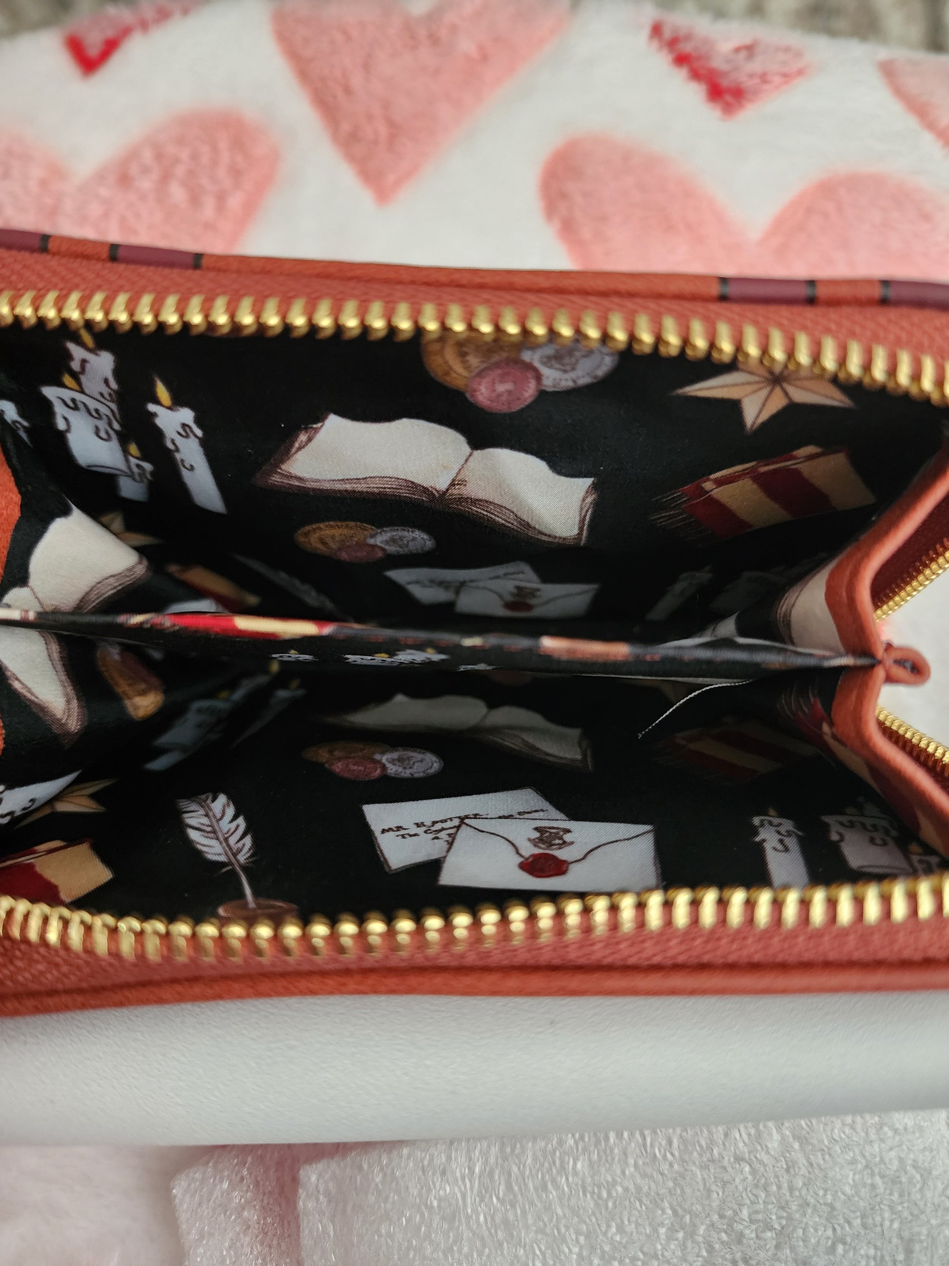 Pack up to go to Hogwarts with this Harry Potter-inspired wallet! Featuring a portrait of Hedwig among Harry's school supplies on the front flap, the back zippered compartment includes a suitcase design. With an accordion zippered pouch, the snap closure opens to reveal four card slots; a clear ID sleeve, and a bills compartment, perfect for keeping your Galleons safe.