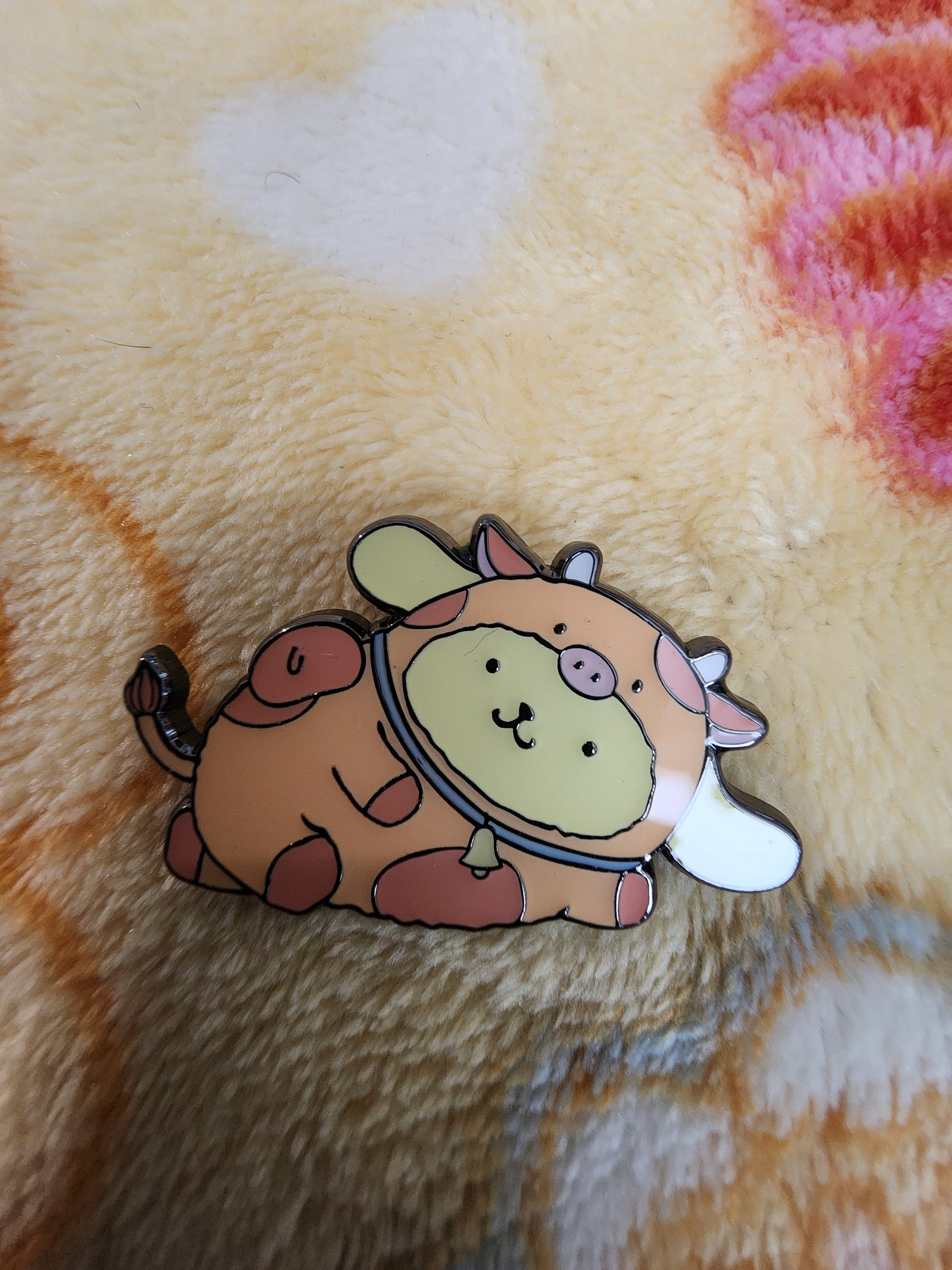 Mooove your other pins over and make room for these! This blind assortment of enamel pins shows Hello Kitty and her friends dressed up as colorful cows. There's My melody, Cinnamoroll, Hello Kitty, Pochacco, Pompompurin and Kuromi.