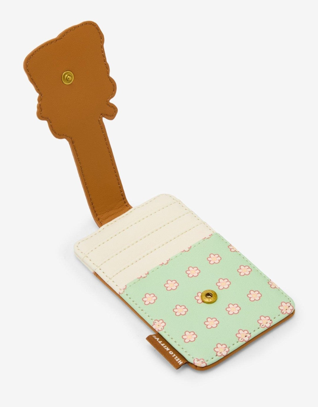 Gather 'round the campfire with your essentials packed into this kawaii Sanrio cardholder! It features an appliqué strap of Hello Kitty playing a song for Tiny Chum. Comes with 4 card slots, clear ID slot and a snap button strap