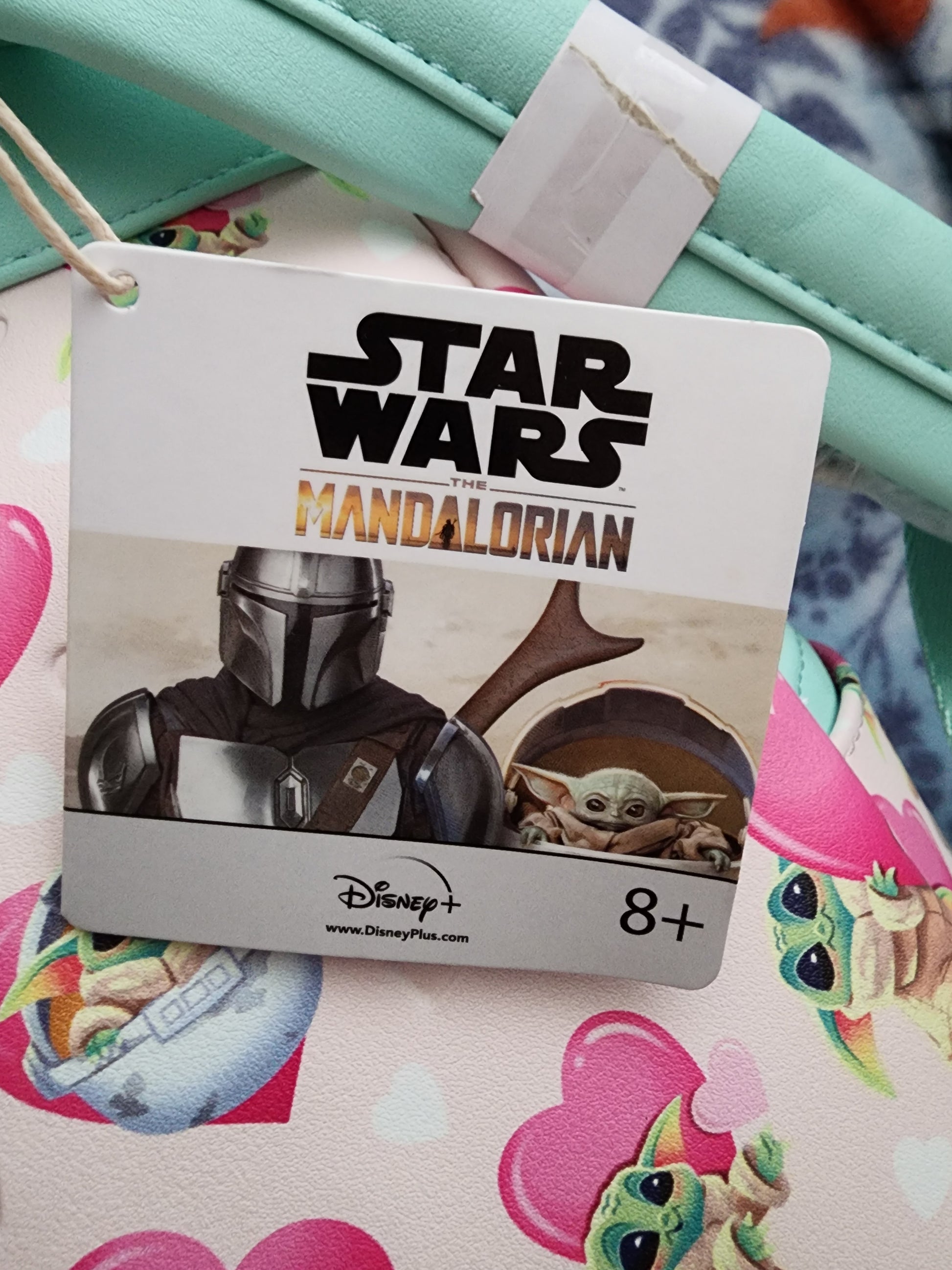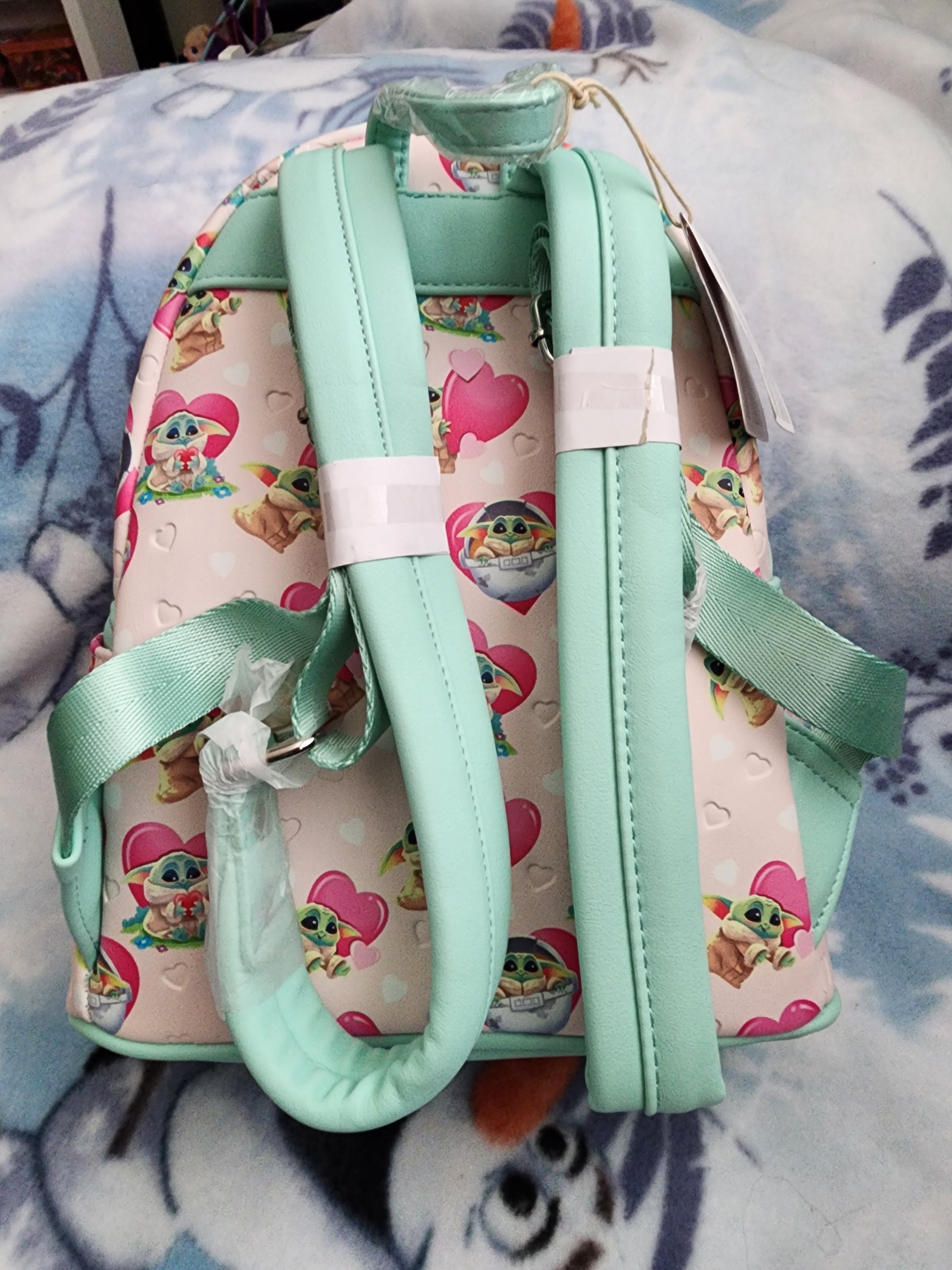 (RRR)Awesome and Super Cute Loungefly Star Wars Baby Yoda Hearts Backpack. This bag has 2 zipper compartments with adjustable straps on the back. Great for everyday use.