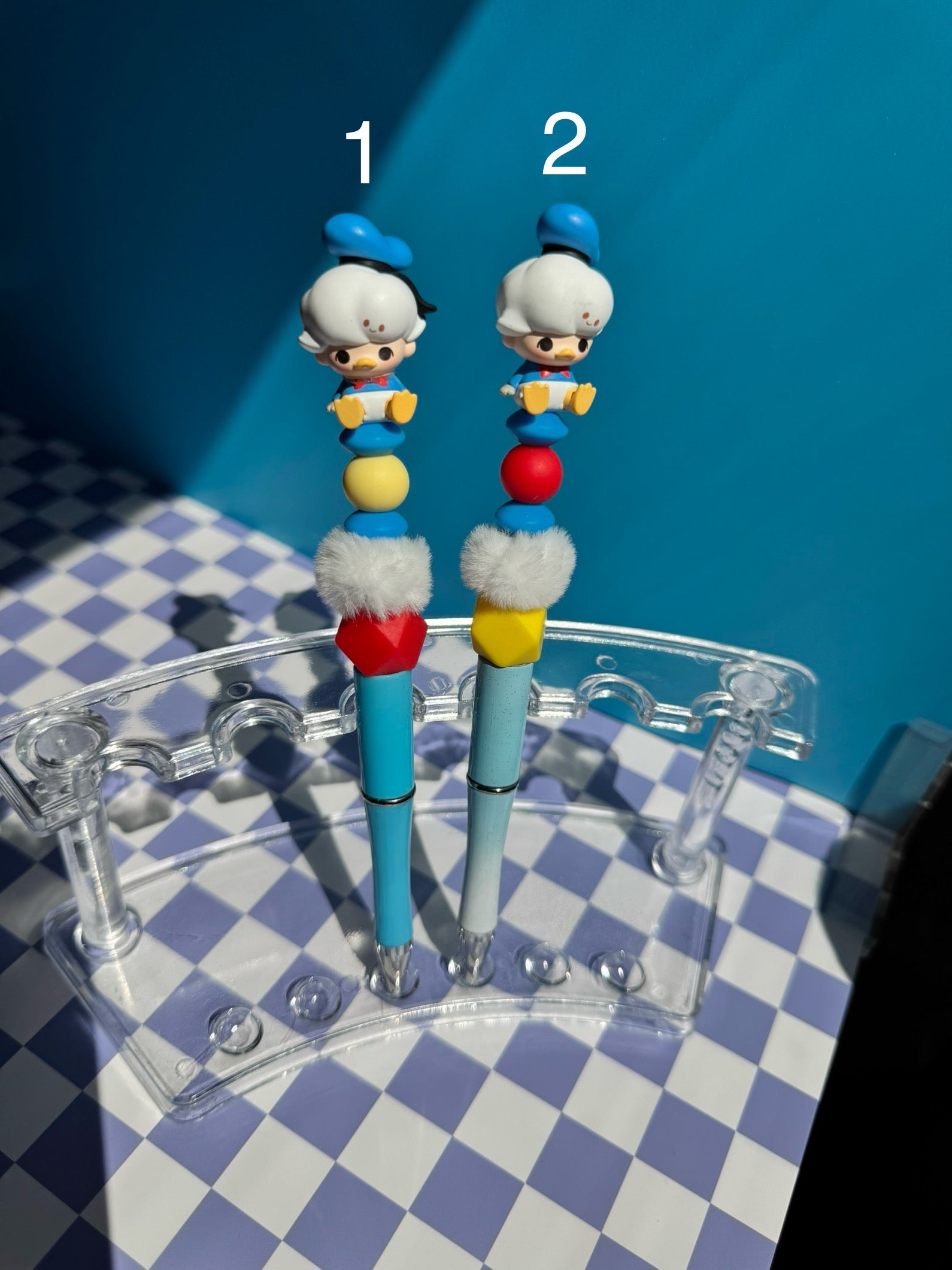 All pens are plastic ballpoint pens with black refillable ink, retractable by twisting. All pens are created with fancy beads inspired by your favorite Disney characters and topped with a Pop Mart Dimoo Disney Pop Bean.