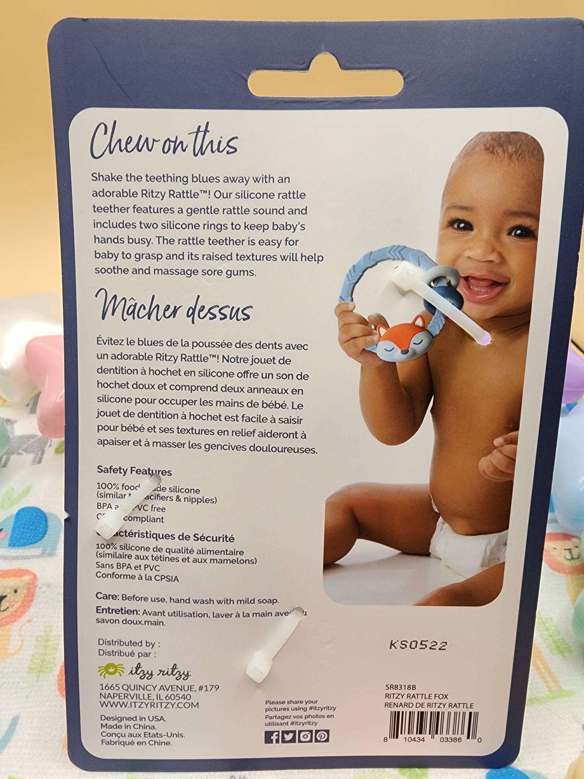 This is a fun and great rattler for baby. It is a cute design and is a teether and Rattle in one. Your baby will love it.