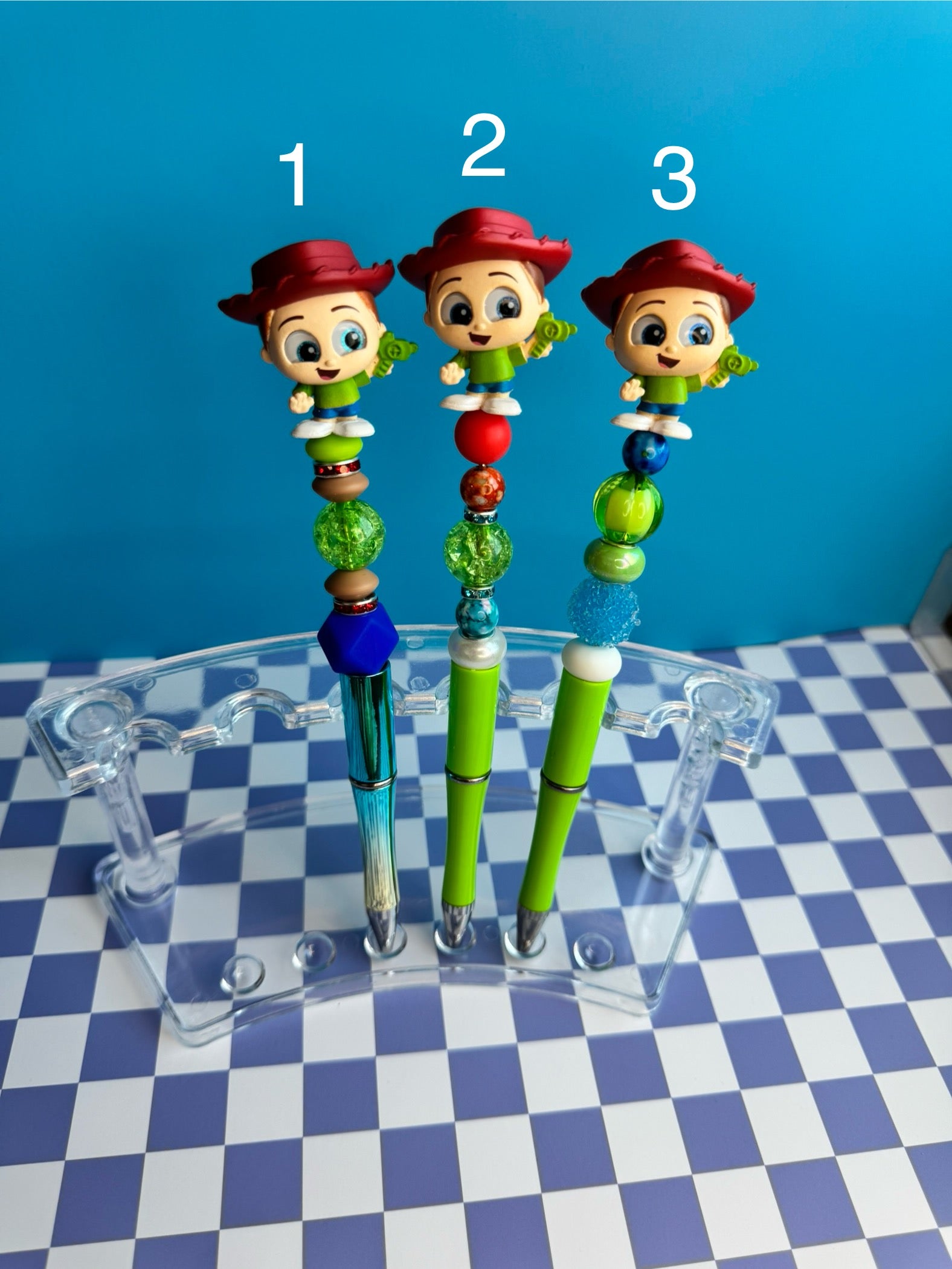 All pens are plastic ballpoint pens with black refillable ink, retractable by twisting. All pens are created with fancy beads inspired by your favorite Disney characters and topped with a Disney Doorable.