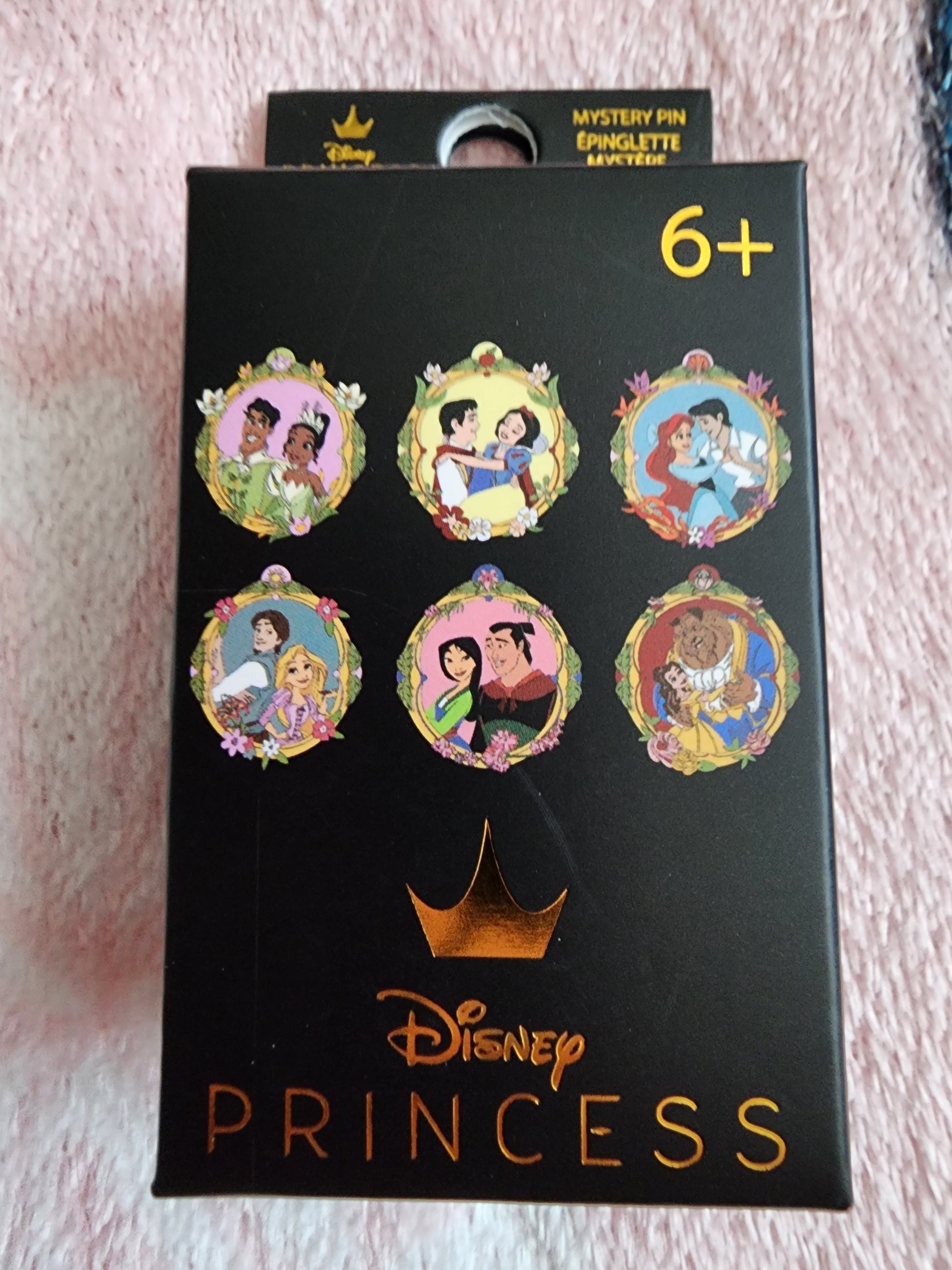 Loungefly Disney Princess and Prince Couples Portrait Mystery Pins. There are 6 different pins to collect. Have fun collecting.