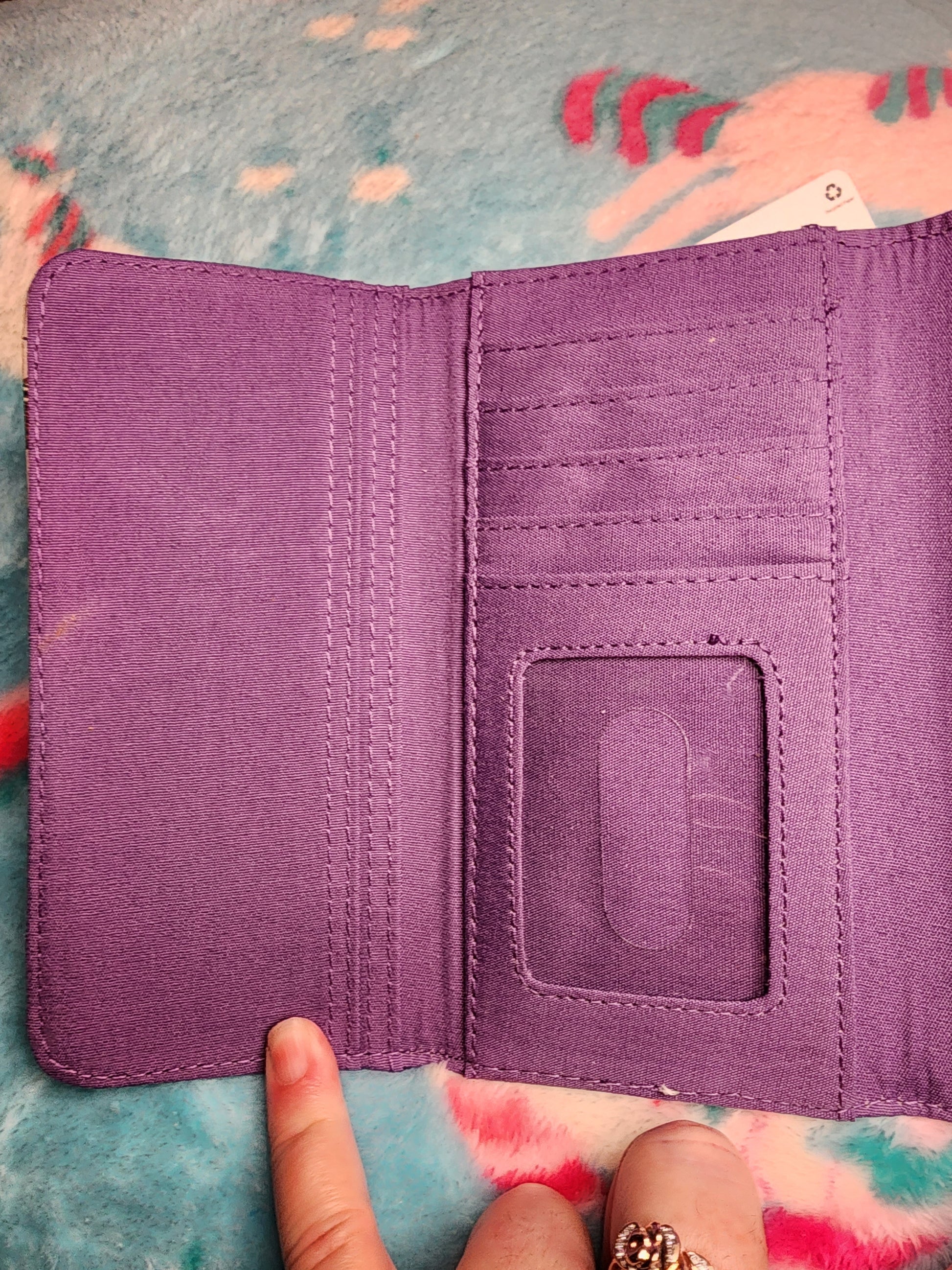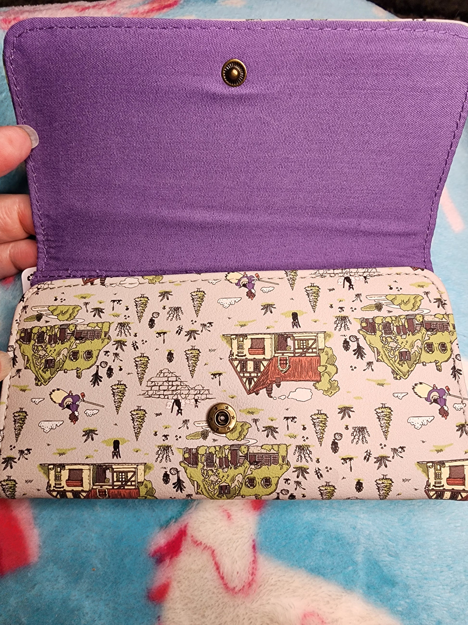 Awesome Kiki's Delivery Service Wallet. It has a snap front closure which opens to a tri-fold wallet. It has slots for credit cards and a ID slot. Great for everyday use