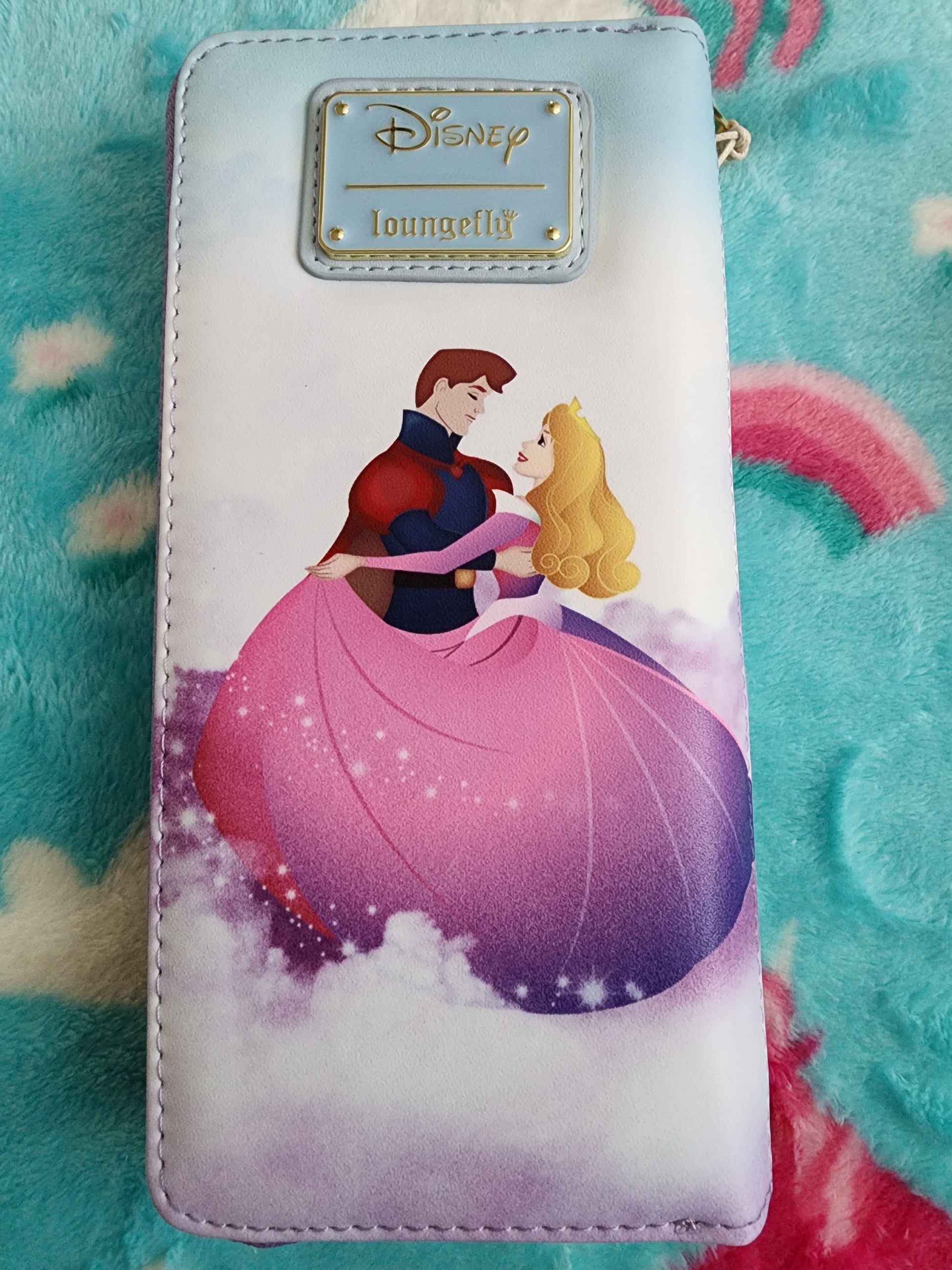 Awesome Loungefly Disney Sleeping Beauty and Prince Philip Wallet. It has an all around zipper closure with slots for credit cards and an ID slot. It says "They Lived Happily Ever After" Great for everyday use.