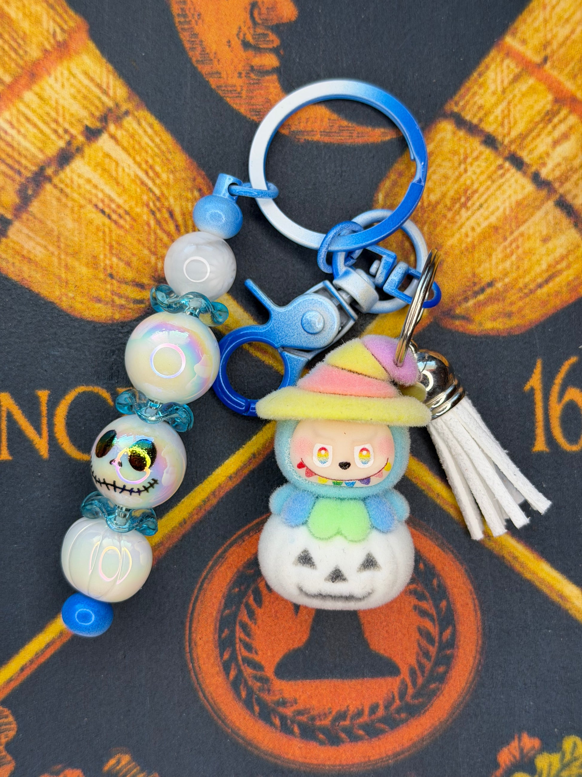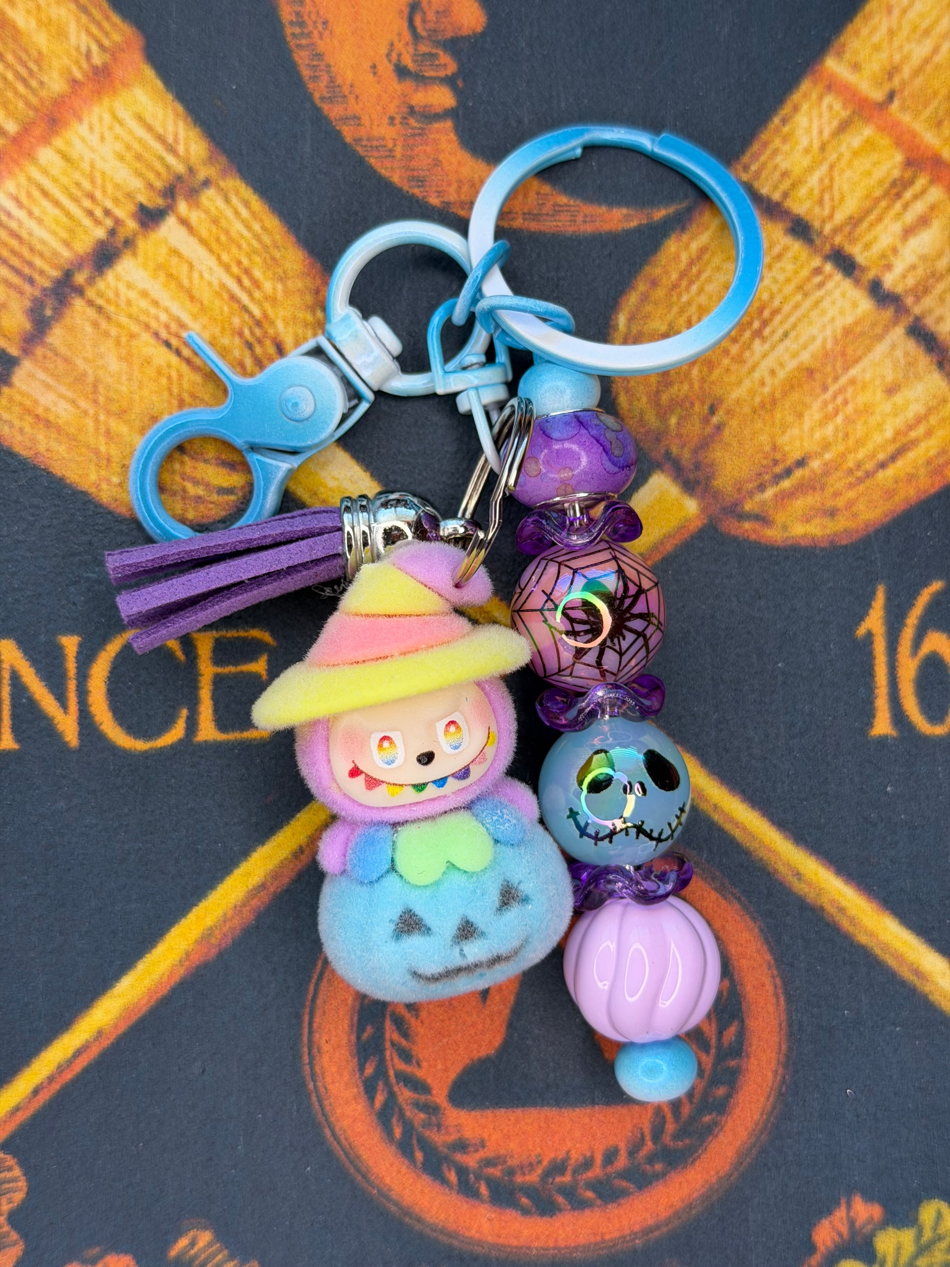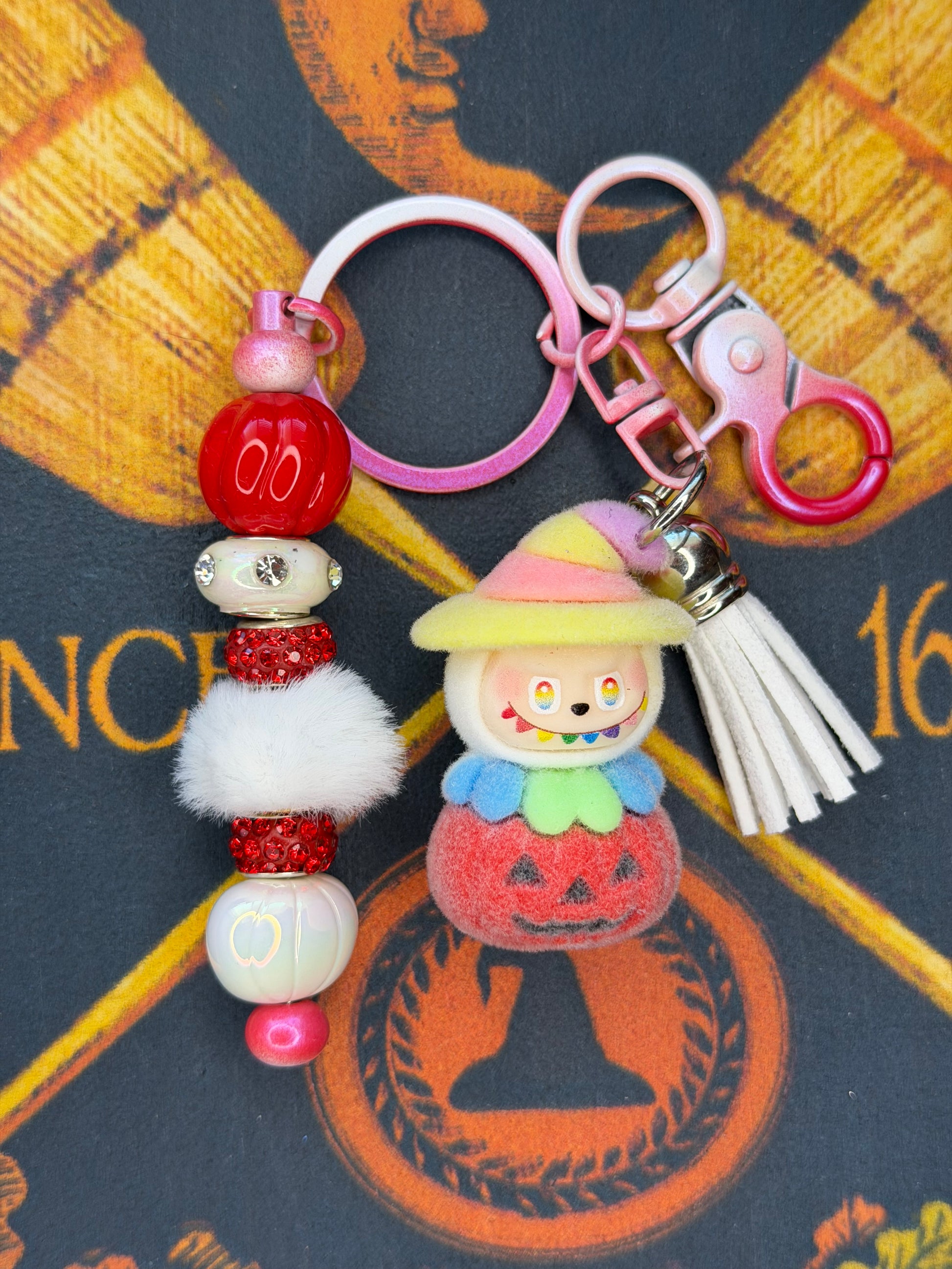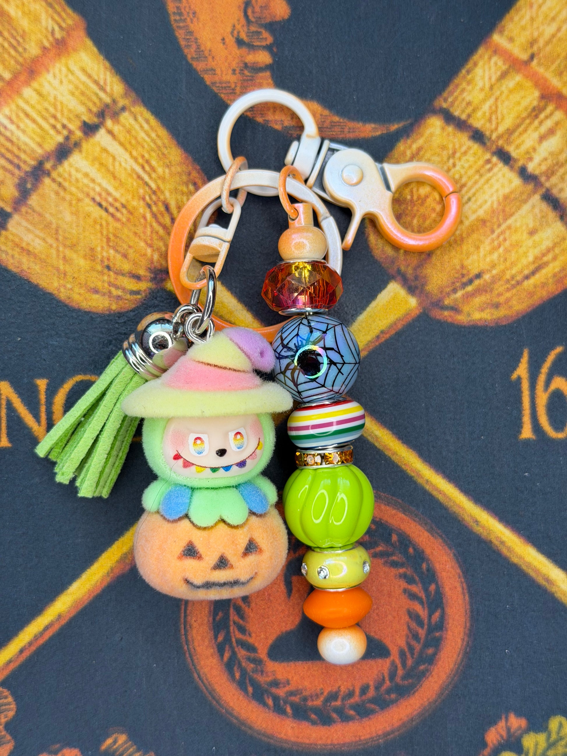 Labubu Witch Pumpkin Flocked Beaded Keychain